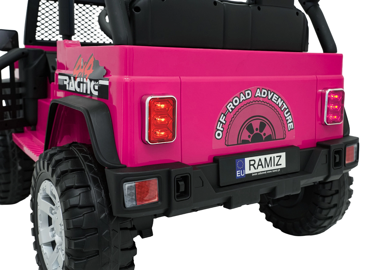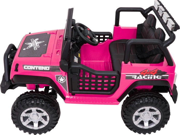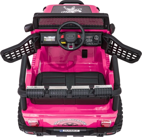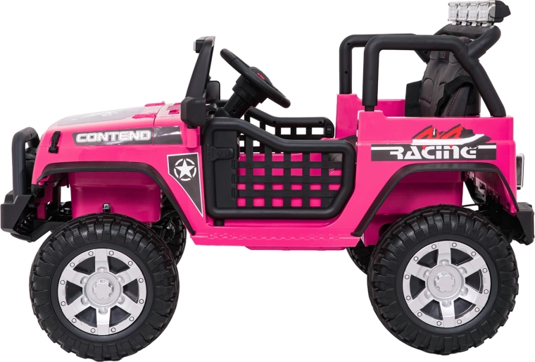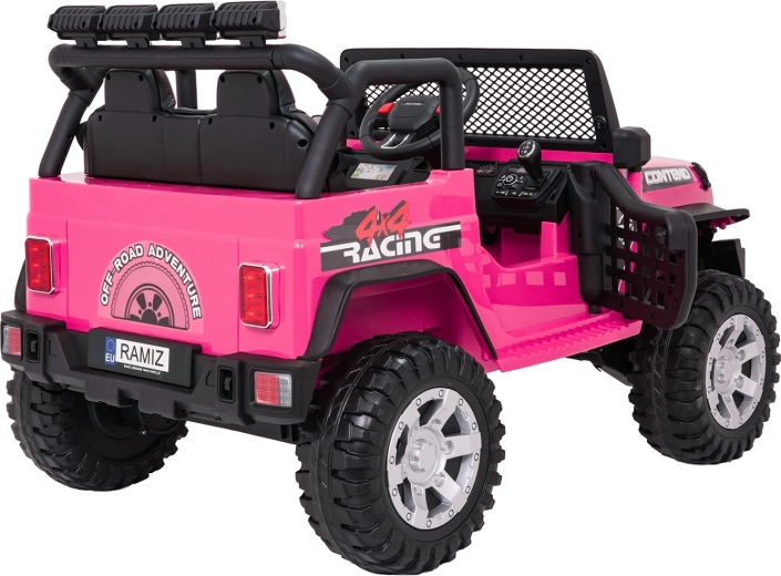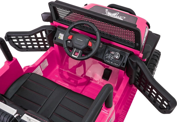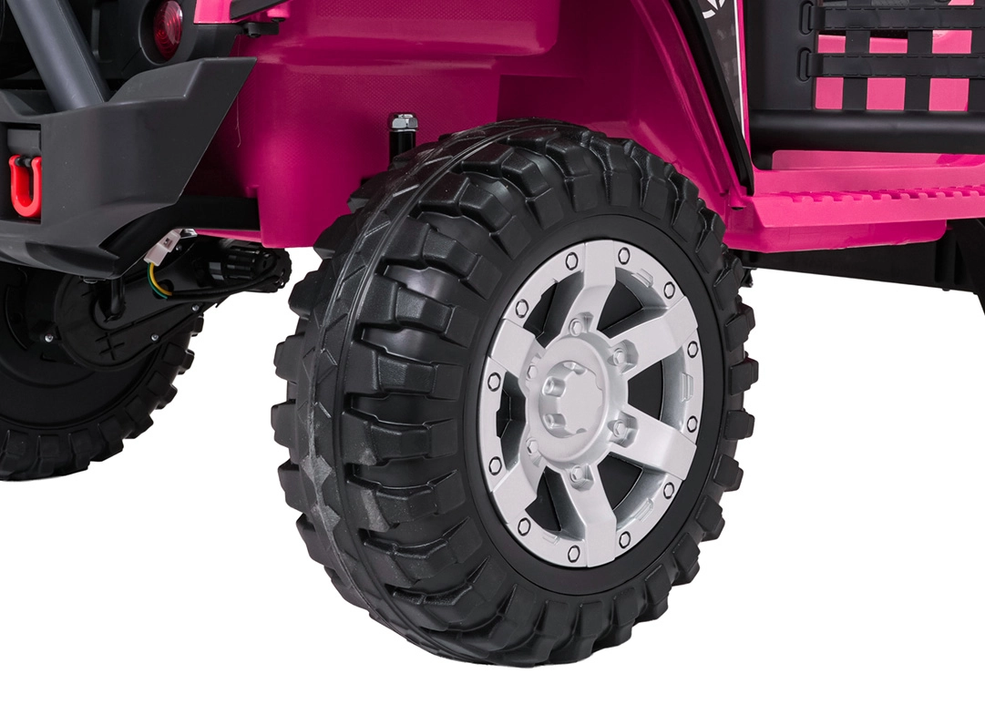 Ružové detské autíčko Beast 4x4 je pripravené na dobrodružstvá doma aj vonku. Poháňajú ho štyri motory 45 W pre plynulú jazdu do kopca, nezávislé odpruženie vpredu aj vzadu zvyšuje komfort a svetlá výška 23 cm si poradí s nerovnosťami. Vďaka mäkkým EVA kolesám 28 × 12 cm je jazda tichá a stabilná.