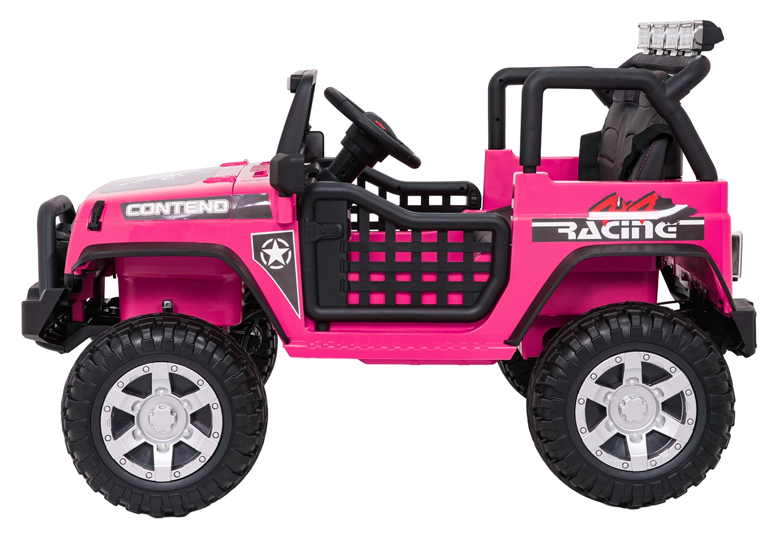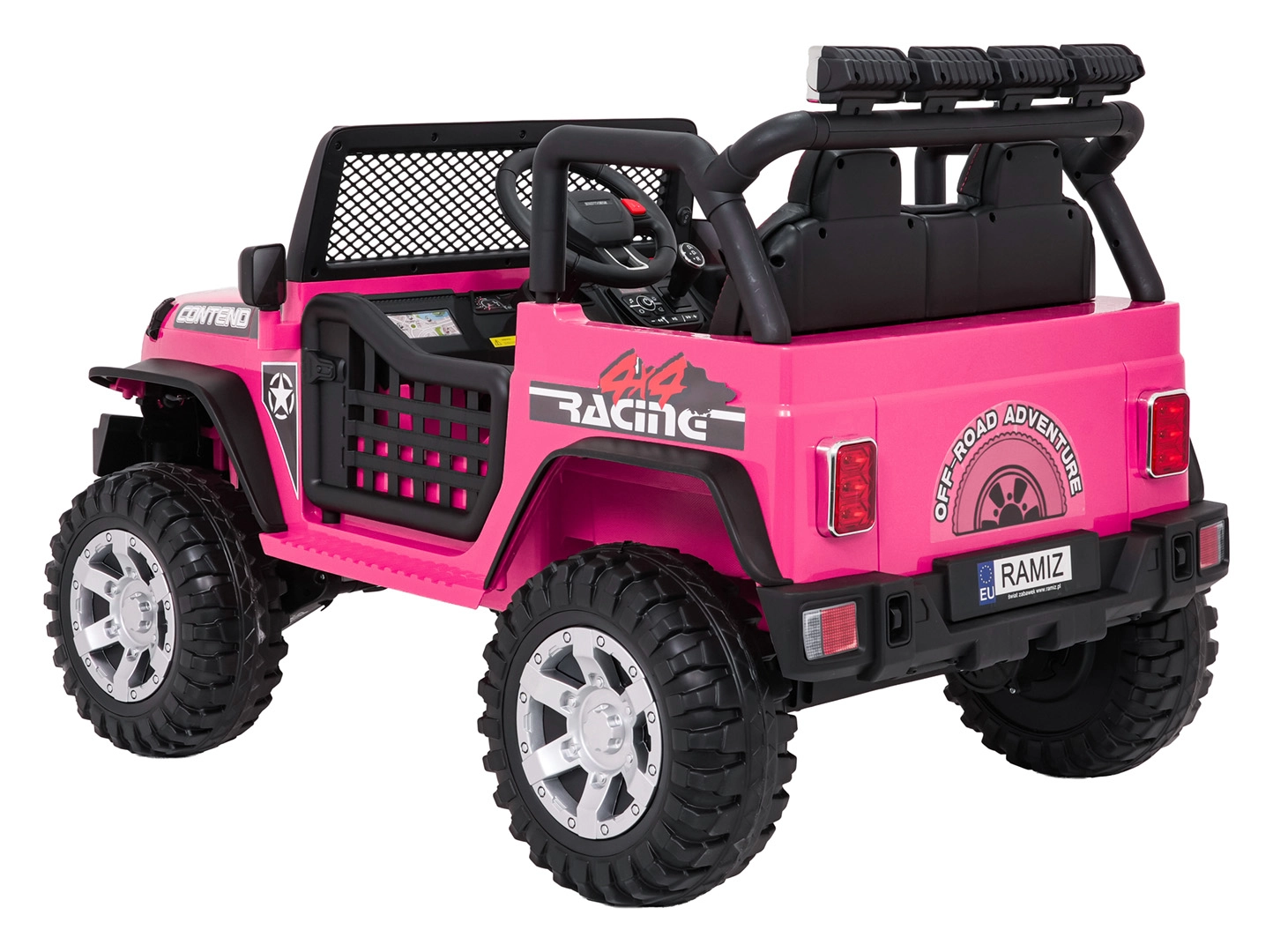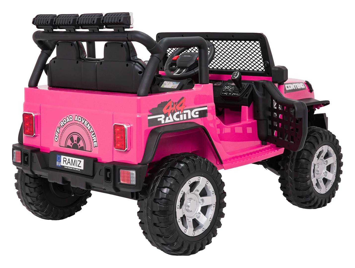 Štýlové elektrické autíčko v štýle jeepu pre dve deti ponúkne silný pohon 4x4 (4×45 W), dvojitú batériu 2× 12 V 7 Ah, mäkké EVA kolesá, predné aj zadné LED svetlá vrátane strešnej rampy a pohodlné sedadlo z eko kože s pásmi. Súčasťou je rodičovský diaľkový ovládač 2,4 GHz so zastavením STOP a multimediálny panel s FM rádiom, MP3, Bluetooth, USB a AUX.