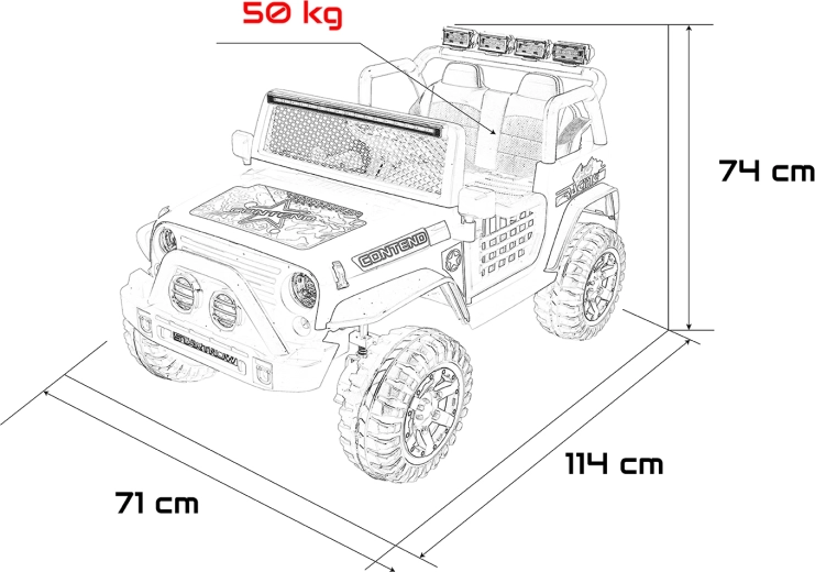 - Max. nosnosť 50 kg, rozmery vozidla 114 × 71 × 74 cm