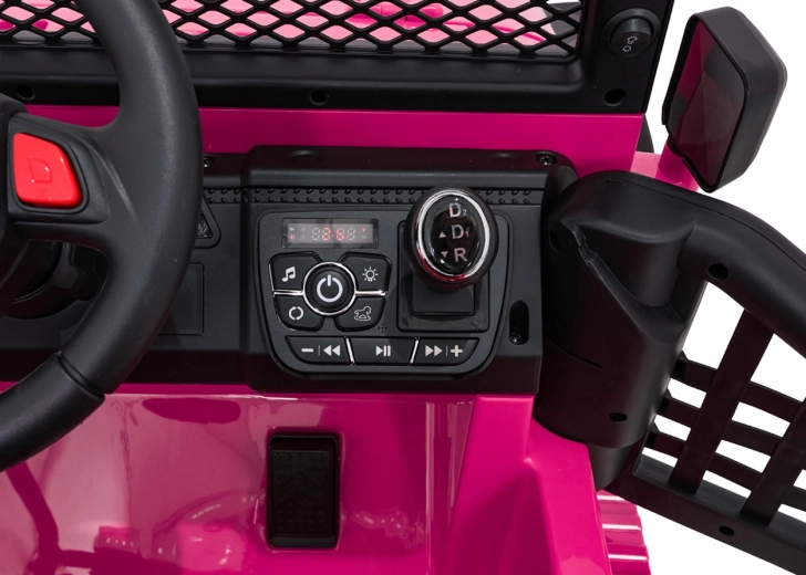Diaľkové ovládanie 2,4 GHz s 3 rýchlosťami a tlačidlom STOP, LED osvetlenie všade navôkol a multimediálny panel s FM rádiom, MP3, Bluetooth, USB a AUX.