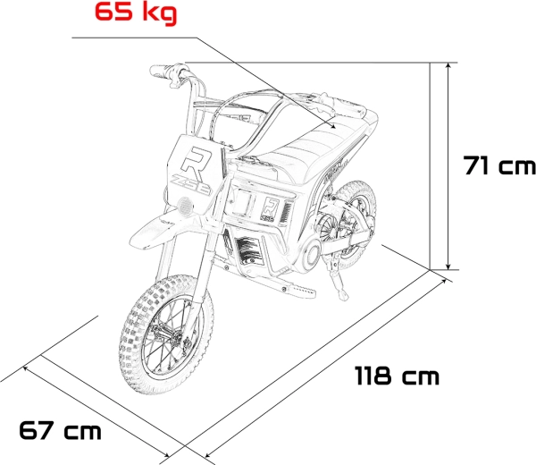 Objavte radosť z jazdy s elektrickou motorkou pre deti RZ56 Max. Robustný rám, nafukovacie terénne pneumatiky a zadný tlmič sa postarajú o stabilitu a komfort na rôznych povrchoch. S trojstupňovým nastavením rýchlosti (L/M/H) a plynulým štartom sa malí jazdci cítia isto a bezpečne.