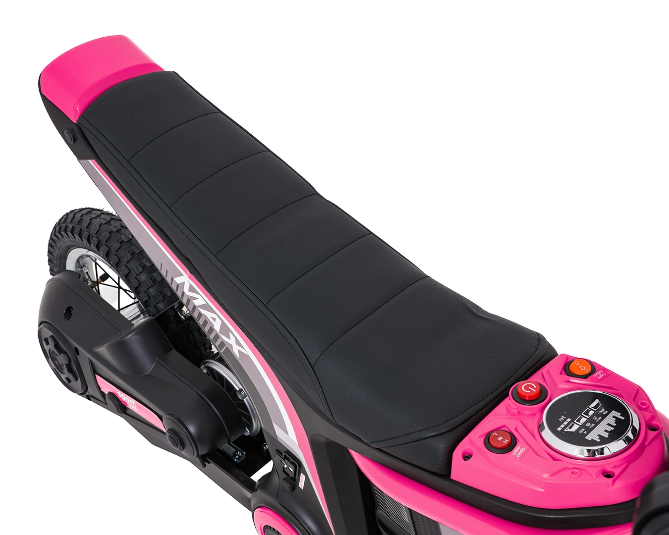 Výkonný motor 350 W napájaný 24V sadou batérií poskytne dostatok sily na zábavnú jazdu, zatiaľ čo prehľadný ovládací panel s ukazovateľom stavu batérie, tlačidlom napájania a prepínačom rýchlostí uľahčí ovládanie. Audio panel s Bluetooth, vstavanými melódiami a klaksónom pridáva ďalšiu porciu zábavy.