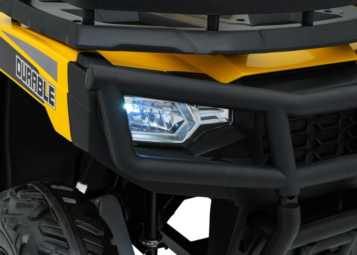 Žltá detská elektrická štvorkolka WOLF 4x4 prináša skutočný off-road zážitok vďaka štyrom samostatným motorom 200 W, ktoré zabezpečia ťah v teréne a istotu na nerovnostiach. Veľké EVA kolesá s hlbokým vzorom poskytujú skvelú priľnavosť a tichú jazdu, predné LED svetlá zlepšujú viditeľnosť a dodávajú realistický vzhľad.