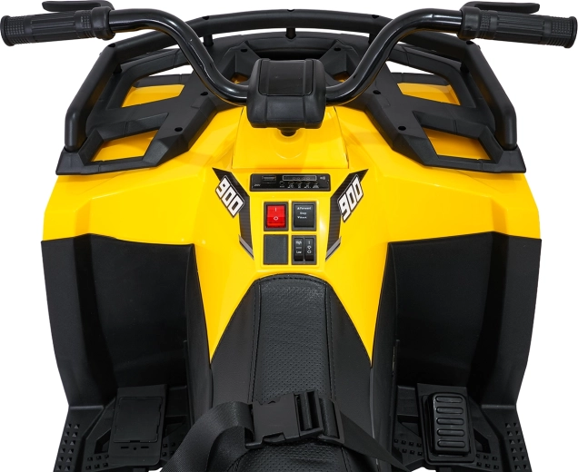 Silná a bezpečná detská štvorkolka pre malých dobrodruhov: 4x200 W pohon kolies, 24 V / 10 Ah batéria, mäkké EVA kolesá, LED svetlá a bohatý audio panel (MP3, Bluetooth, USB, SD). Stabilná konštrukcia, plynulý rozjazd, dve rýchlosti a diaľkové ovládanie 2,4 GHz s núdzovým tlačidlom Stop pre pokojné a zábavné jazdenie vonku.