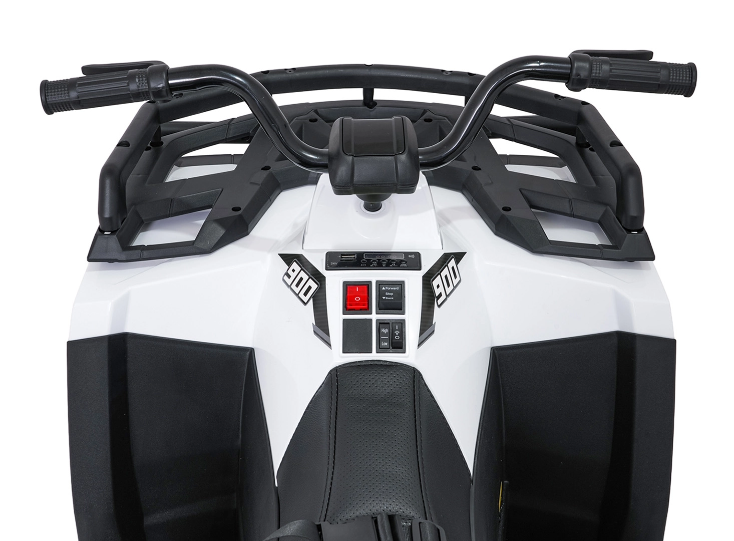 Robustná elektrická štvorkolka pre deti s pohonom 4x4, silnými motormi 4×200 W a batériou 24 V 10 Ah zvládne aj náročnejší terén. Veľké EVA kolesá, zadné odpruženie, plynulý rozjazd a dve rýchlosti zabezpečujú pohodlnú a bezpečnú jazdu. Nechýbajú LED svetlá, bezpečnostné pásy a multimediálny panel s USB/SD/AUX/Bluetooth a MP3.