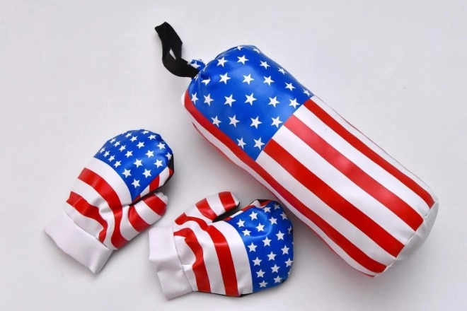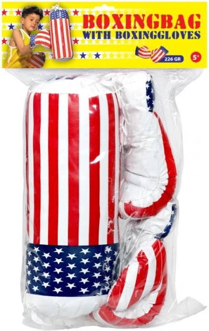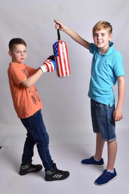 Rukavice majú veľkosť, ktorá je vhodná pre malé detské ruky. Vrecko a rukavice s motívmi americkej vlajky zabavia každého malého bojovníka. Hračka je vyrobená z mäkkého materiálu, takže sa nemusíte obávať prípadného zranenia. Rozvíja kondíciu a predstavivosť dieťaťa a podporuje zdravý pohyb.