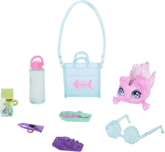 Súčasťou je aj jej verný miláčik Neptuna a sada módnych a herných doplnkov – od kabelky a slnečných okuliarov po nápoje, desiatu či inteligentné zariadenie. To všetko podporuje fantáziu, štýlovanie a role-play počas hry.