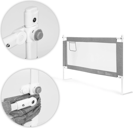 Výšková regulácia s aretáciou prispôsobí zábranu hrúbke matraca a zabezpečí stabilné dosadnutie bez medzier.