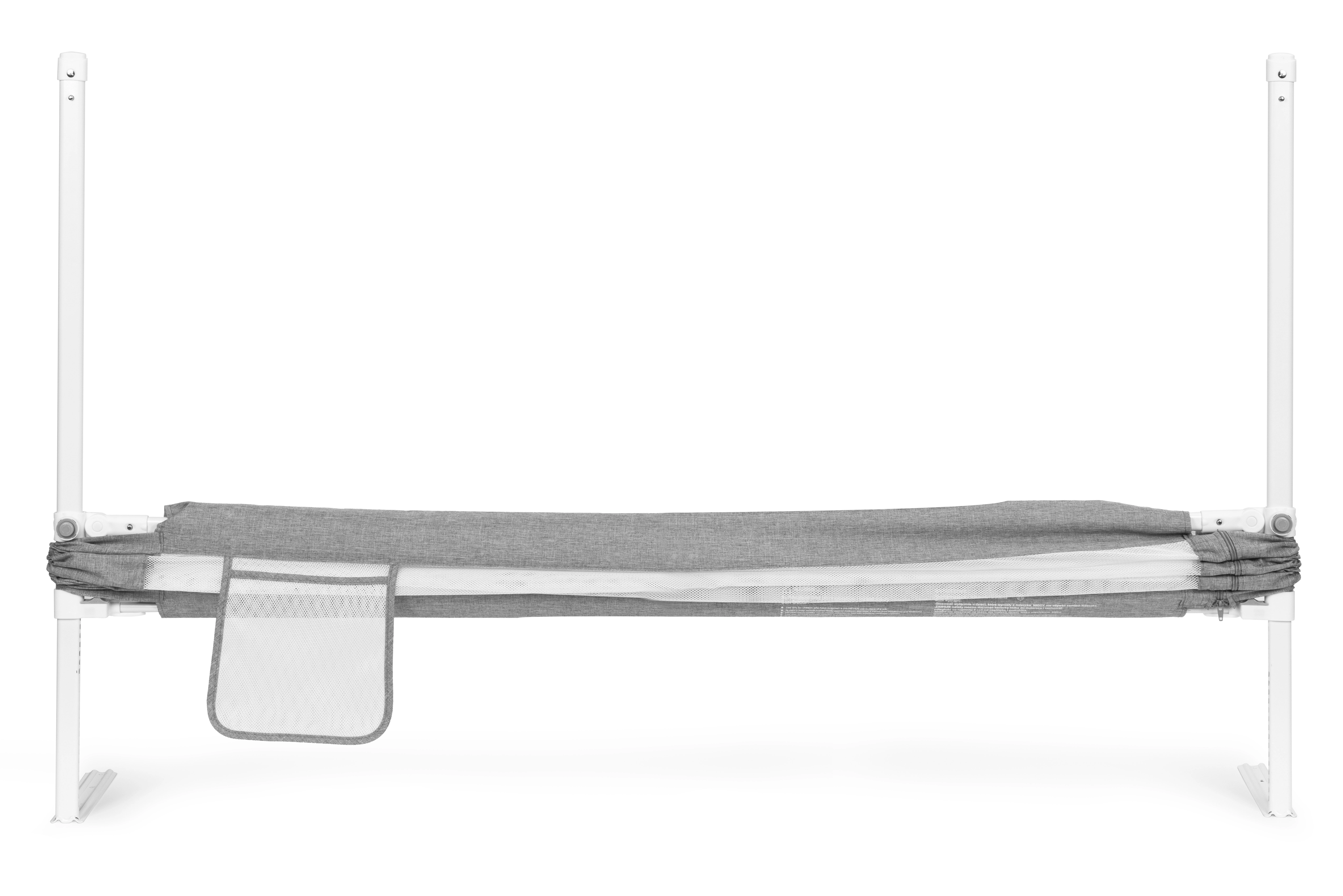 Hornú časť zábrany možno jednoducho sklopiť tlačidlom, takže nástup do postele aj prístup k dieťaťu je rýchly a pohodlný. Integrované vrecko udrží po ruke cumlík, fľaštičku či vreckovky. Zábrany možno prepojiť do súvislej zostavy a ochrániť tak viac strán postele.