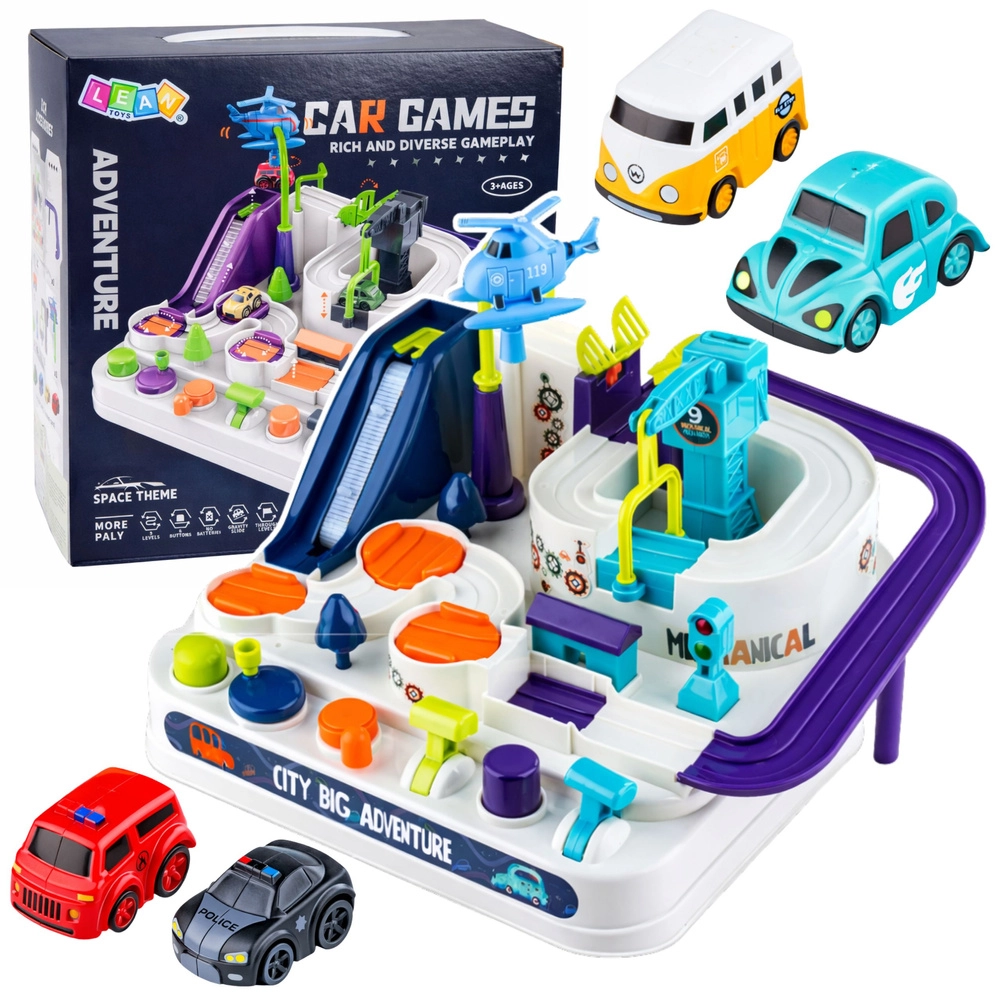 Objavte zábavnú a vzdelávaciu hračku, ktorá spája logické myslenie, jemnú motoriku a aktívnu hru bez batérií. Interaktívny prekážkový autodráhový set s parkoviskom ponúka mechanické ovládanie tlačidlami a pákami, množstvo zákrut, mostov a výťah a navyše obsahuje 4 autíčka a helikoptéru pre dlhé hodiny tvorivej hry.