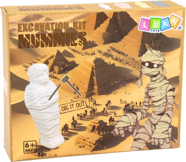 Objavte tajomstvá starovekého Egypta s kreatívnou archeologickou sadou pre deti. V sadrovom bloku je ukrytá figúrka, napr. faraón, múmia alebo sarkofág. Deti si precvičia trpezlivosť, presnosť aj jemnú motoriku a zažijú radosť z vlastného objavu. Súčasťou sú nástroje na bezpečné „vykopávky“ a jednoduchý postup. Kreatívna zábava, edukatívna hra a tematika starovekého Egypta v jednom.
