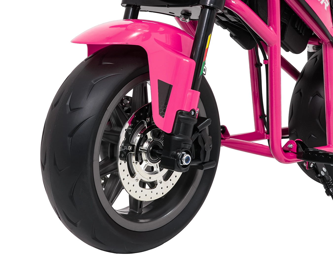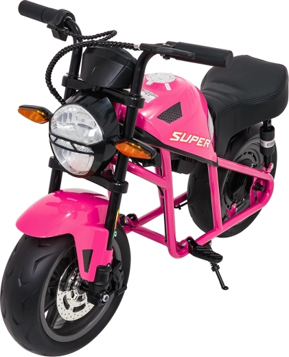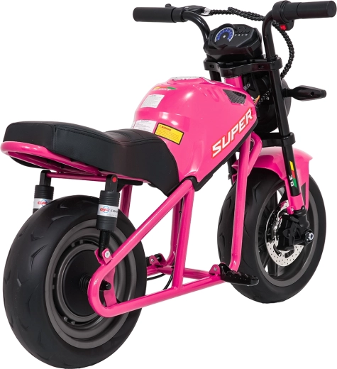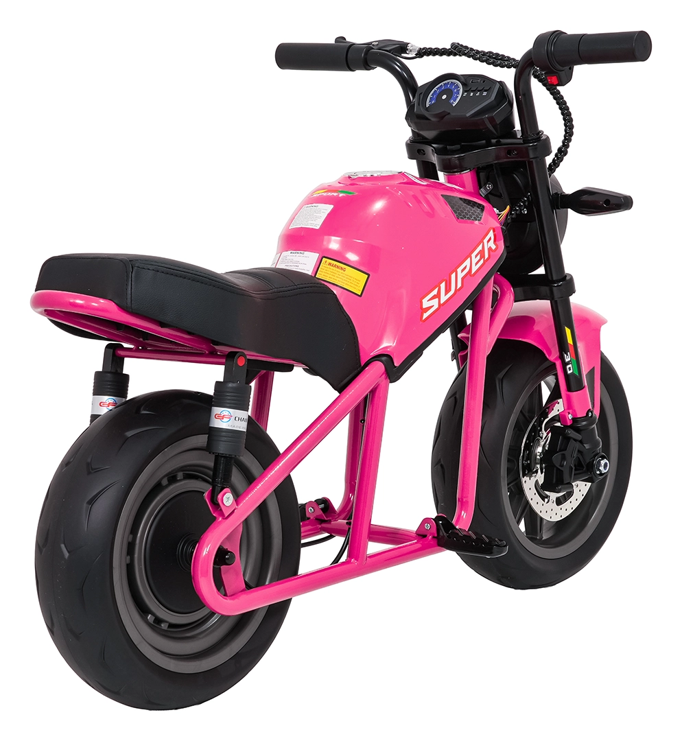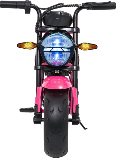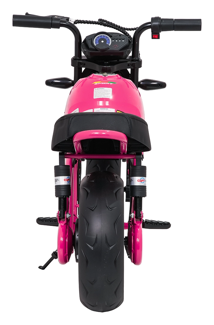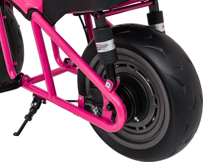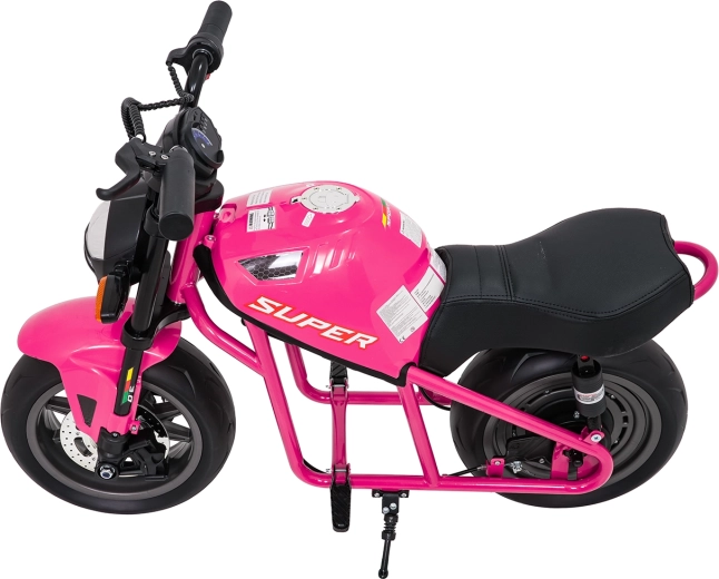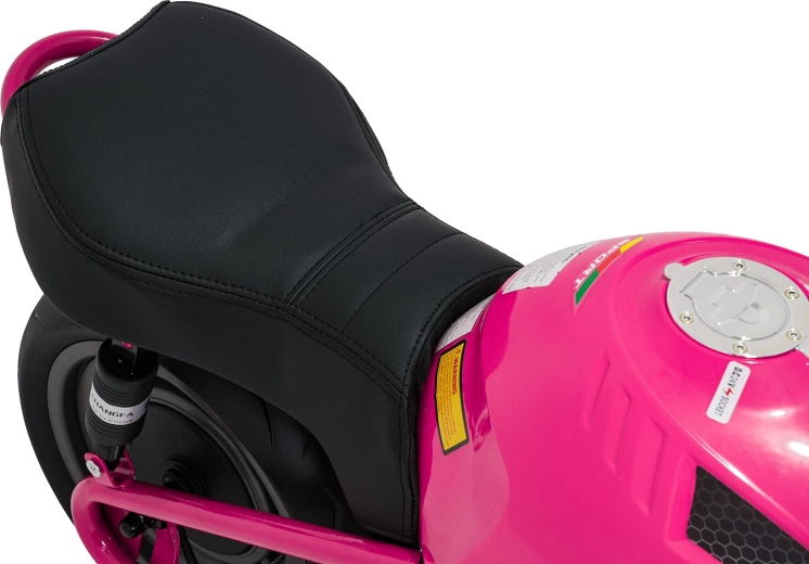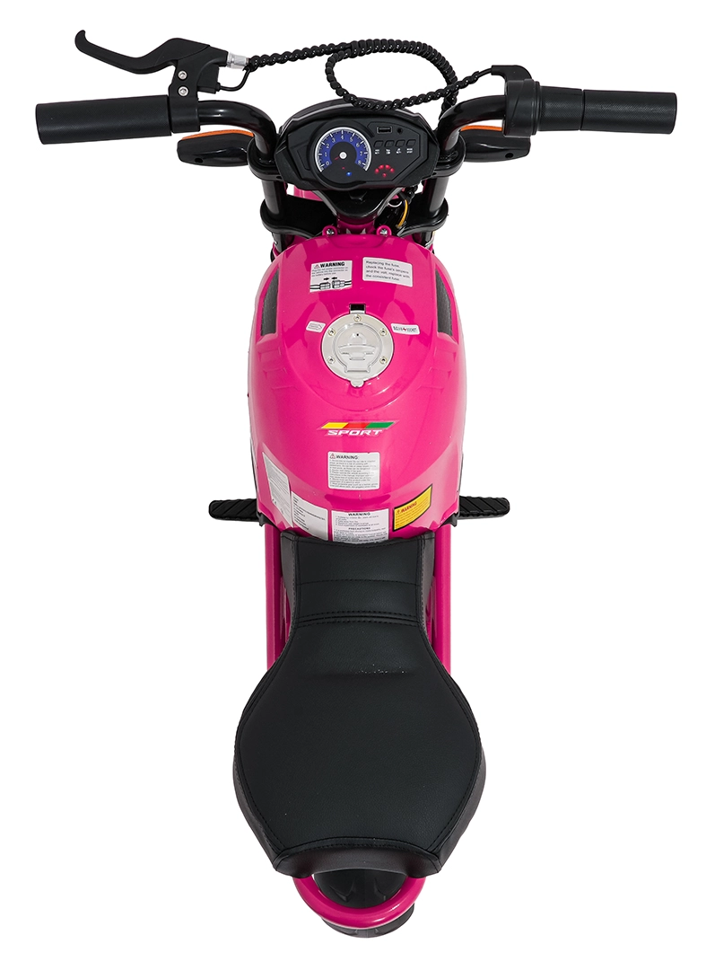 Ružová detská elektrická motorka SUPERMOTO spája športový vzhľad, bezpečnosť aj pohodlie. Silný motor 300 W a batéria 24 V 9 Ah zaistia svižnú a plynulú jazdu, plynulý štart zas pokojný rozjazd bez trhania. Široké EVA kolesá (33×12 cm) zvyšujú stabilitu na rôznych povrchoch a predné LED svetlo s podsvietenou palubnou doskou zlepšia viditeľnosť.