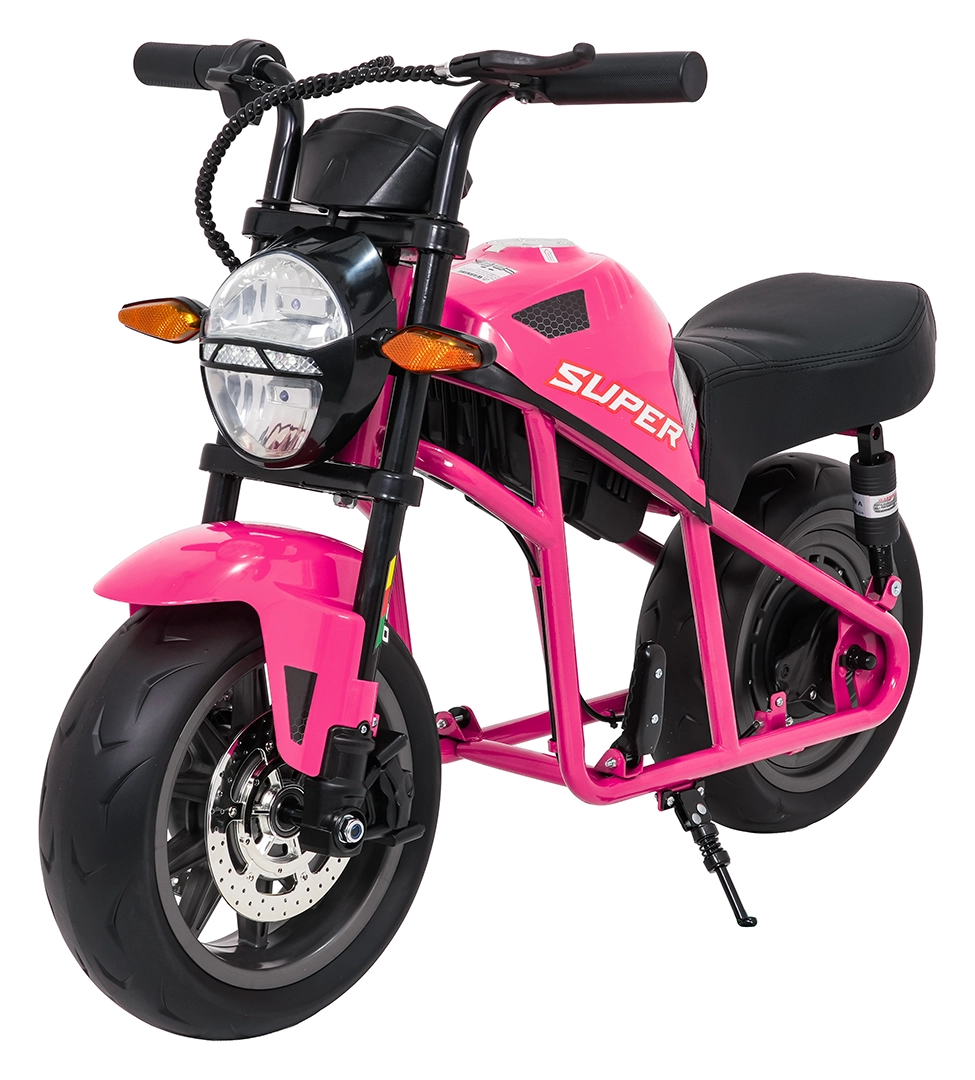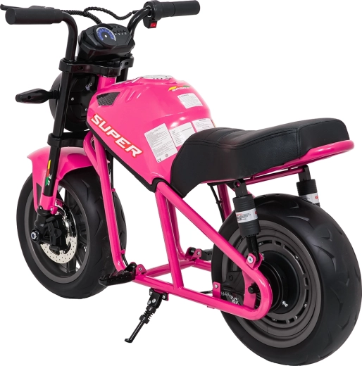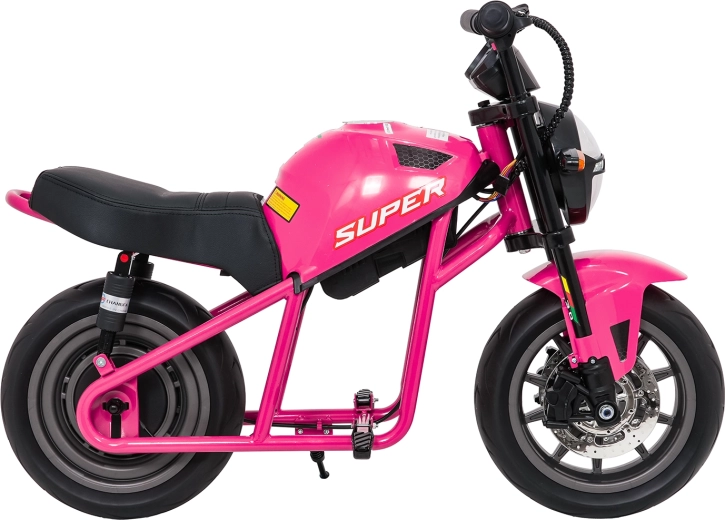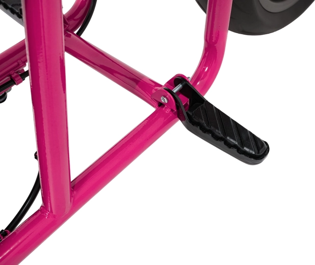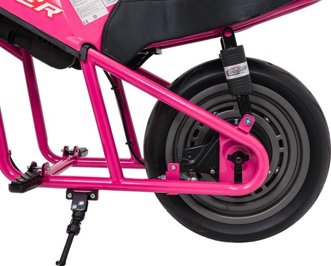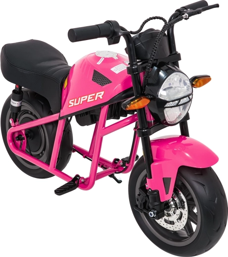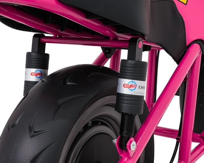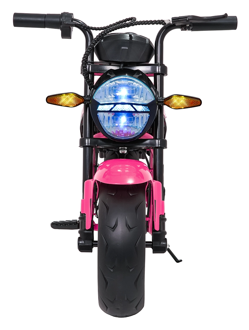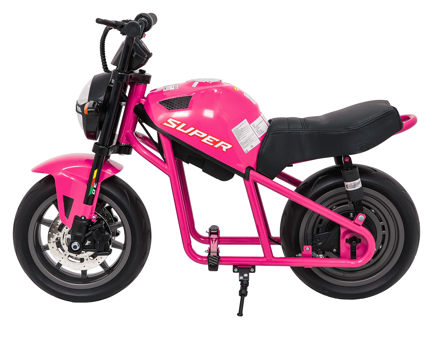 Ružová detská elektrická motorka SUPERMOTO spája športový vzhľad, bezpečnosť aj pohodlie. Silný motor 300 W a batéria 24 V 9 Ah zaistia svižnú a plynulú jazdu, plynulý štart zas pokojný rozjazd bez trhania. Široké EVA kolesá (33×12 cm) zvyšujú stabilitu na rôznych povrchoch a predné LED svetlo s podsvietenou palubnou doskou zlepšia viditeľnosť.