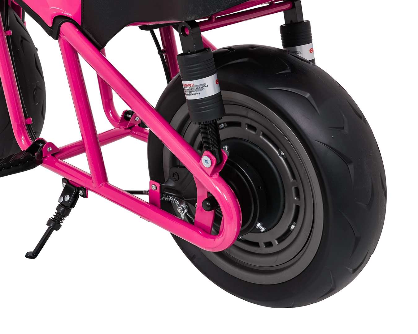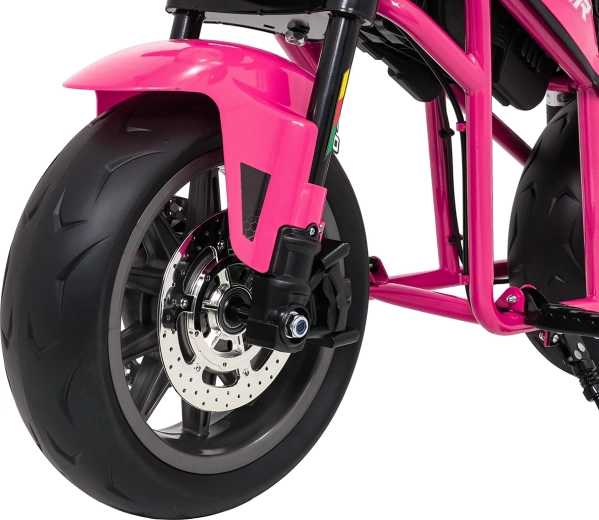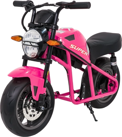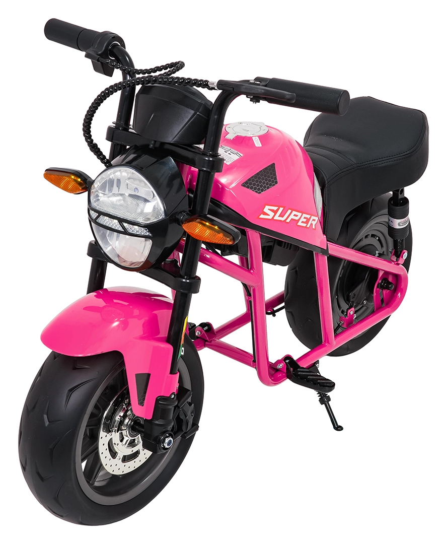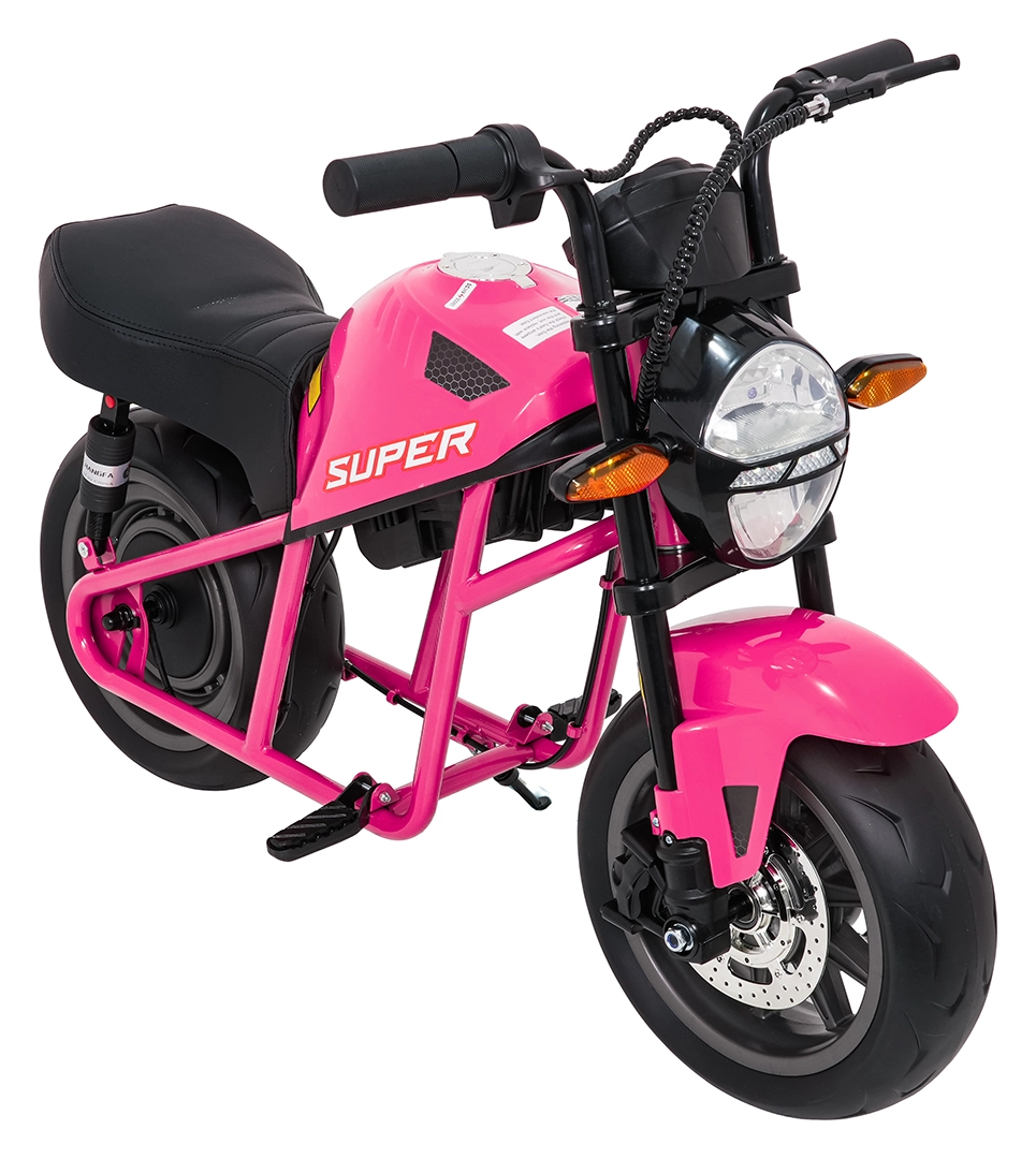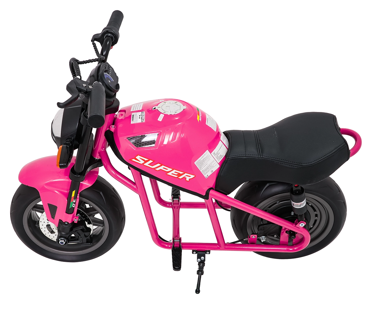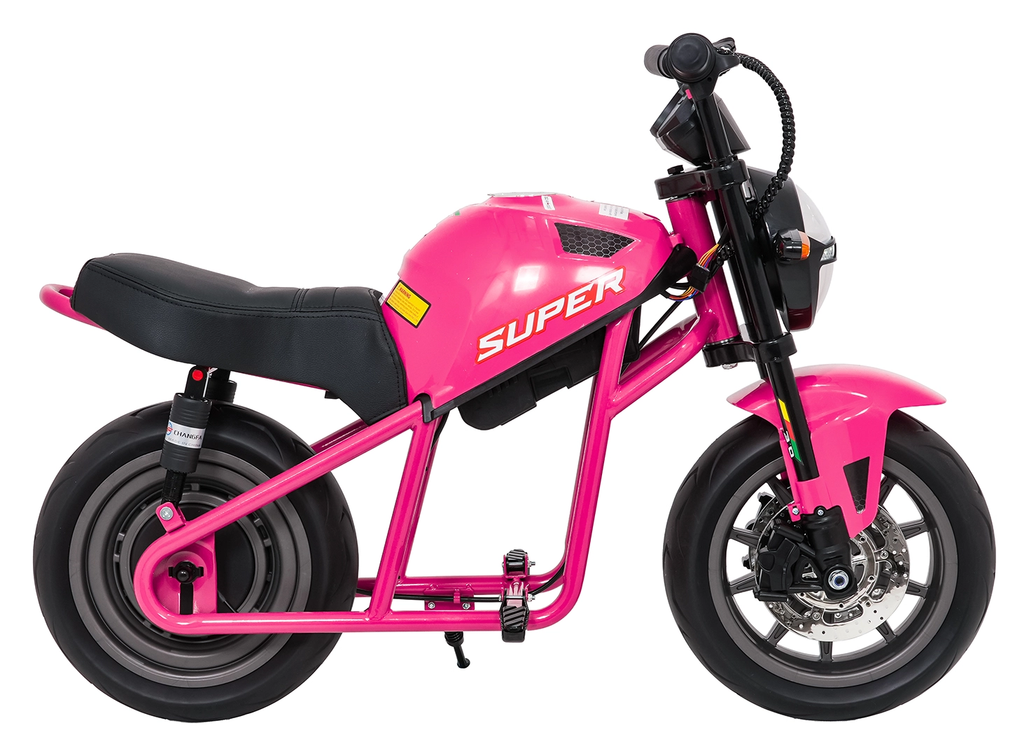 Ružová detská elektrická motorka SUPERMOTO spája športový vzhľad, bezpečnosť aj pohodlie. Silný motor 300 W a batéria 24 V 9 Ah zaistia svižnú a plynulú jazdu, plynulý štart zas pokojný rozjazd bez trhania. Široké EVA kolesá (33×12 cm) zvyšujú stabilitu na rôznych povrchoch a predné LED svetlo s podsvietenou palubnou doskou zlepšia viditeľnosť.
