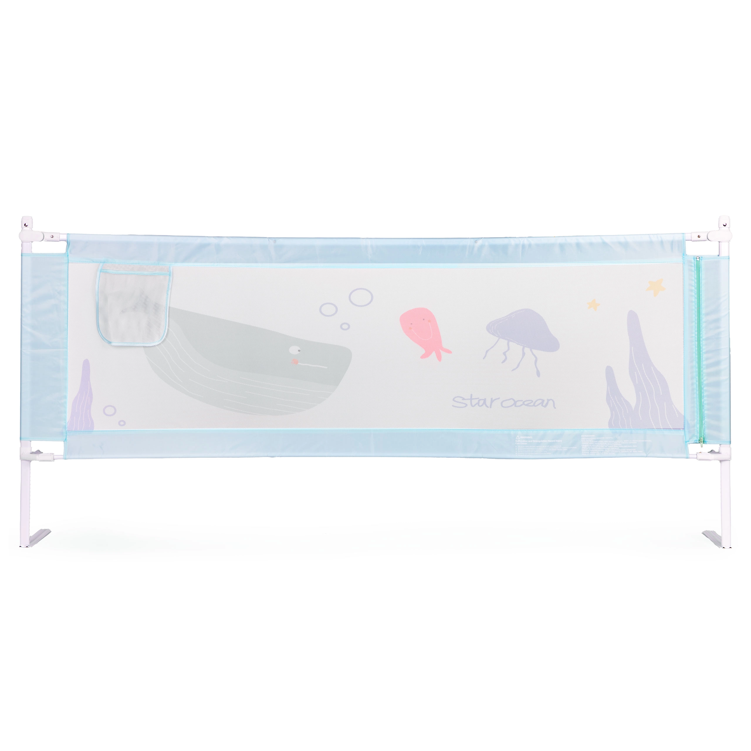 Vďaka univerzálnemu upevneniu možno zábranu inštalovať na ktorúkoľvek hranu postele a prepojiť viac dielov do bezpečného celku. Odolné materiály – oceľ, kvalitná tkanina 210D Oxford a polyester – garantujú stabilitu a dlhú životnosť. Praktické vrecko udrží po ruke cumlík, vreckovky alebo obľúbenú hračku.