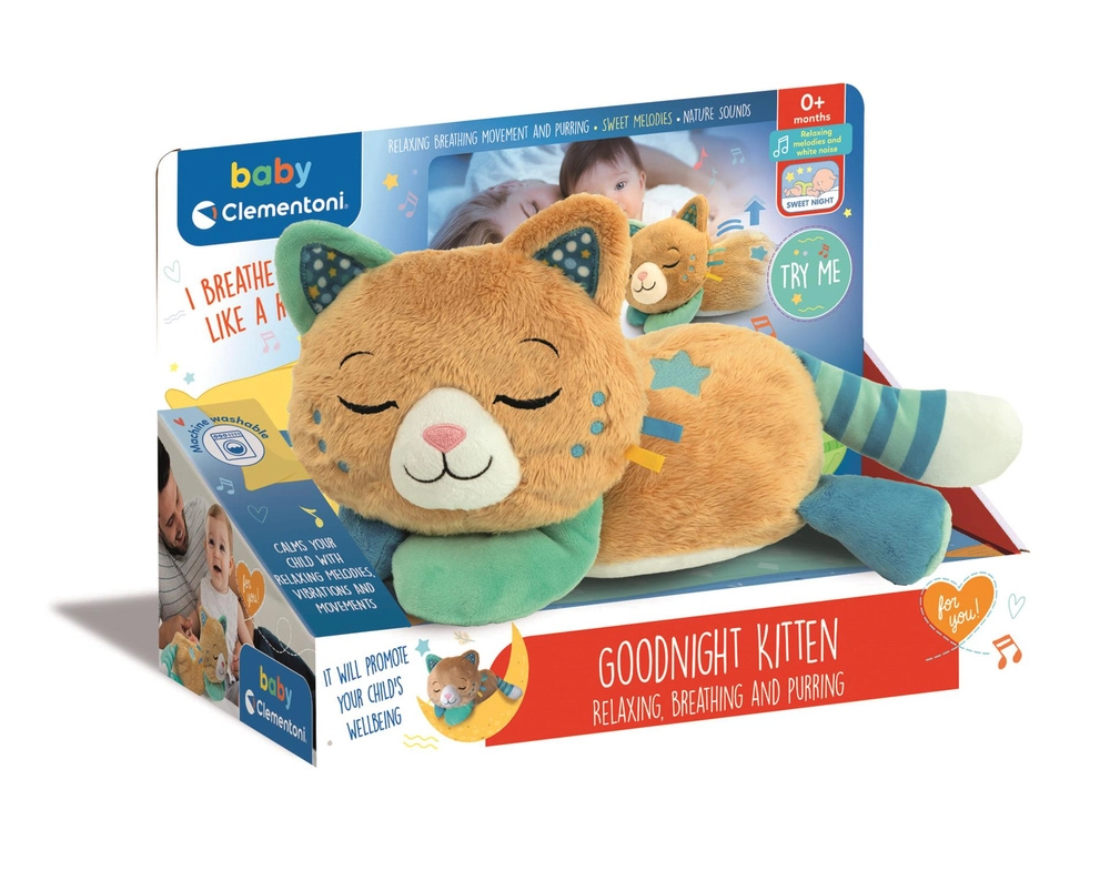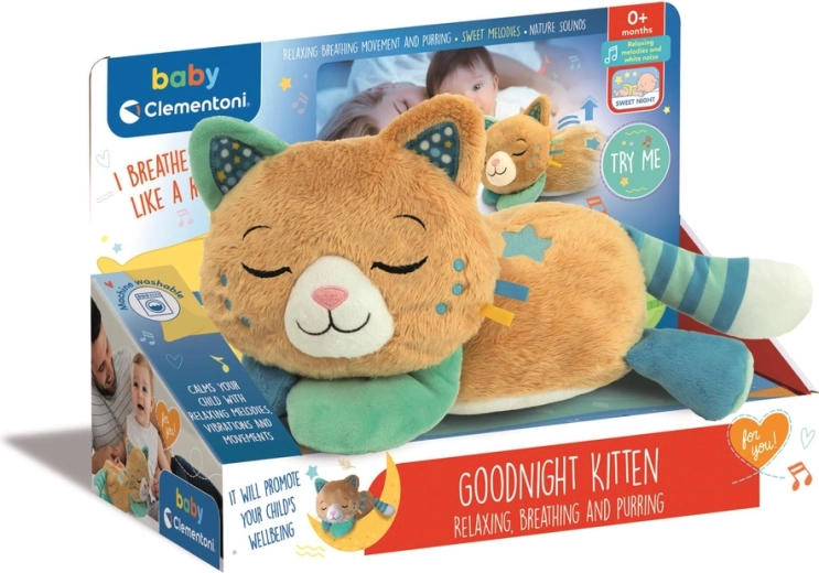 Mručiaca mačka Morfeusz je mimoriadne mäkká plyšová hračka pre bábätká od narodenia, ktorá upokojuje a pomáha zaspávať. Vďaka inovatívnemu zvukovému modulu a jemným vibráciám napodobňuje prirodzené mručanie a pokojný dych mačičky, čím navodzuje pocit bezpečia a relaxácie. Ľahko sa udržiava – po vybratí elektronického modulu ju môžete prať v práčke.