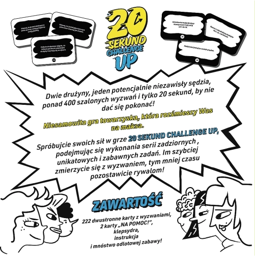 Rýchla a zábavná párty hra 20 sekúnd Challenge: Nové rozdanie od TREFL preverí reflexy, kreativitu a postará sa o kopec smiechu. Na splnenie úlohy máte len 20 sekúnd – ideálna voľba na večierky, rodinné večery aj stretnutia s priateľmi.