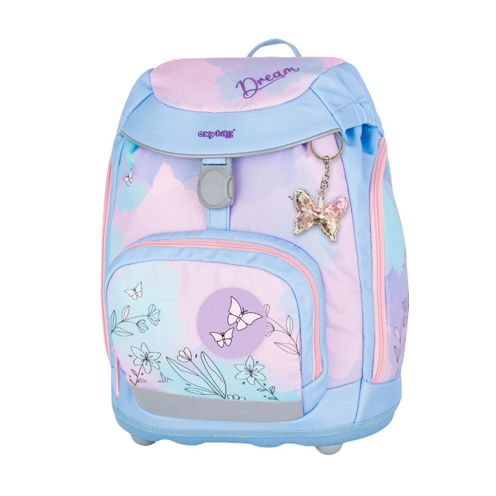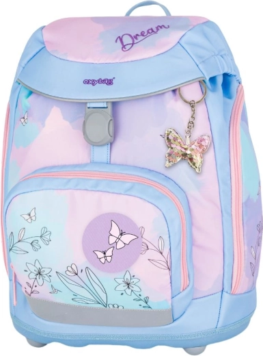Školský set 4 ks OXYBAG Sherpy Kolibrík prináša ľahký a premyslený batoh s jemným pastelovým dizajnom s motívmi kolibríkov a motýľov, doplnený ladiacim peračníkom, vakom a sadou vymeniteľných odznakov na suchý zips. Deti si tak môžu prispôsobiť vzhľad podľa nálady a zároveň mať všetky školské potreby prehľadne usporiadané.