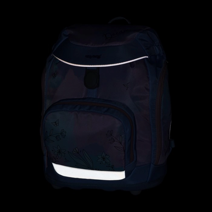 Pevné dno s plastovými nožičkami zabraňuje prevráteniu a umožňuje batohu stáť samostatne. Reflexné prvky zvyšujú viditeľnosť a bezpečnosť dieťaťa.