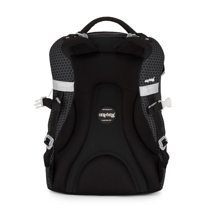 Školský batoh OXY Ombre black je navrhnutý tak, aby deťom od 3. triedy poskytol pohodlie, poriadok aj bezpečie na ceste do školy. Ergonomicky tvarovaný chrbtový panel s dĺžkou 43 cm, polstrované popruhy a nastaviteľný hrudný popruh zabezpečujú zdravé rozloženie záťaže a komfort pri každodennom nosení.