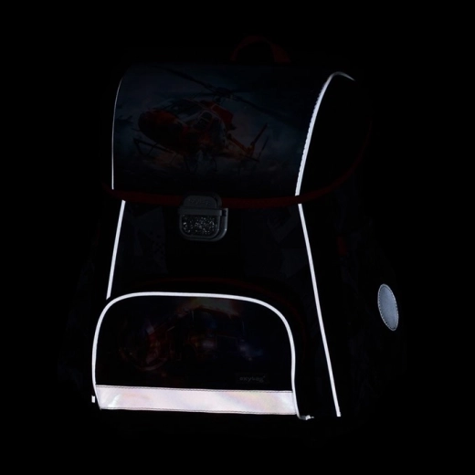 Školský batoh Premium s hasičským motívom podporuje správne držanie tela vďaka anatomicky tvarovanému chrbtu a pevnej vnútornej výstuhe, ktorá udržiava stály tvar. Priedušné polstrovanie a široké mäkčené popruhy s možnosťou perfektného usadenia rovnomerne rozkladajú záťaž na ramená dieťaťa. Bezpečnosť zvyšuje kovová pracka s reflexným odrazovým prvkom a množstvo reflexných prvkov pre lepšiu viditeľnosť.