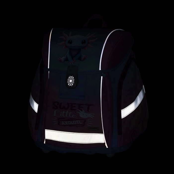 Ľahký a ergonomický školský batoh Premium Light s motívom axolotla váži len 970 g a ponúka objem 26 l, anatomicky tvarovaný chrbát, široké mäkčené popruhy s hrudným pásom a reflexné prvky pre bezpečnosť. Praktické magnetické zapínanie, vnútorný organizér a množstvo vreciek zaistia perfektný prehľad o školských potrebách. Ideálny pre najmladších školákov od výšky 121 cm.