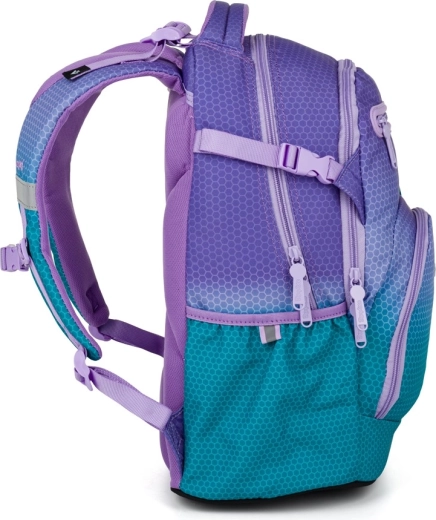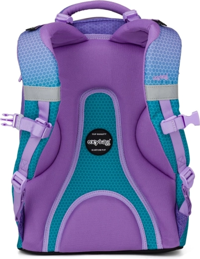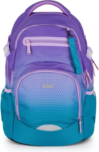 Školský batoh OXY Ombre v atraktívnom modro‑ružovom prevedení kombinuje moderný dizajn s ergonómiou pre každodenné pohodlie. Vďaka anatomicky tvarovanému chrbtovému panelu a polstrovaným ramenným popruhom výborne sedí na chrbte, zatiaľ čo nastaviteľný hrudný popruh pomáha rovnomerne rozložiť záťaž. Pevné dno udržiava batoh stabilný a chráni obsah.