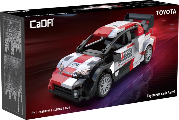 Stavebnica CaDA prináša športové vozidlo TOYOTA GR YARIS RALLY1 s agresívnou siluetou, závodnými polepmi a aerodynamickými detailmi. Vďaka 317 dielikom si vychutnáte príjemný modelársky zážitok a po dokončení získate atraktívny model vhodný na vystavenie aj na ľahkú hru na stole.