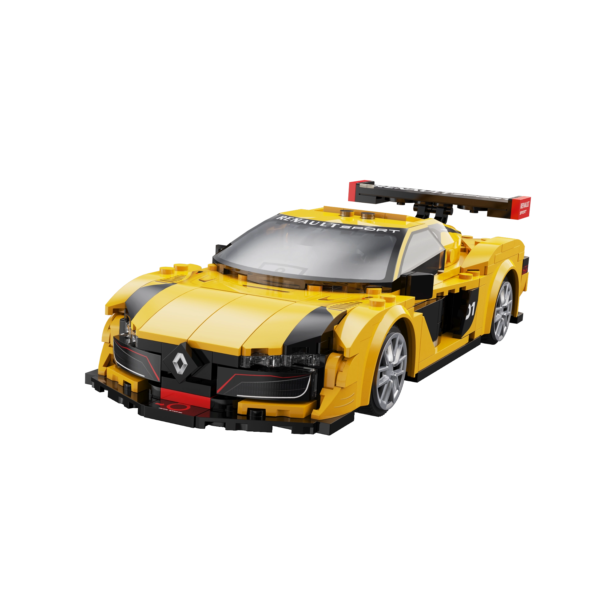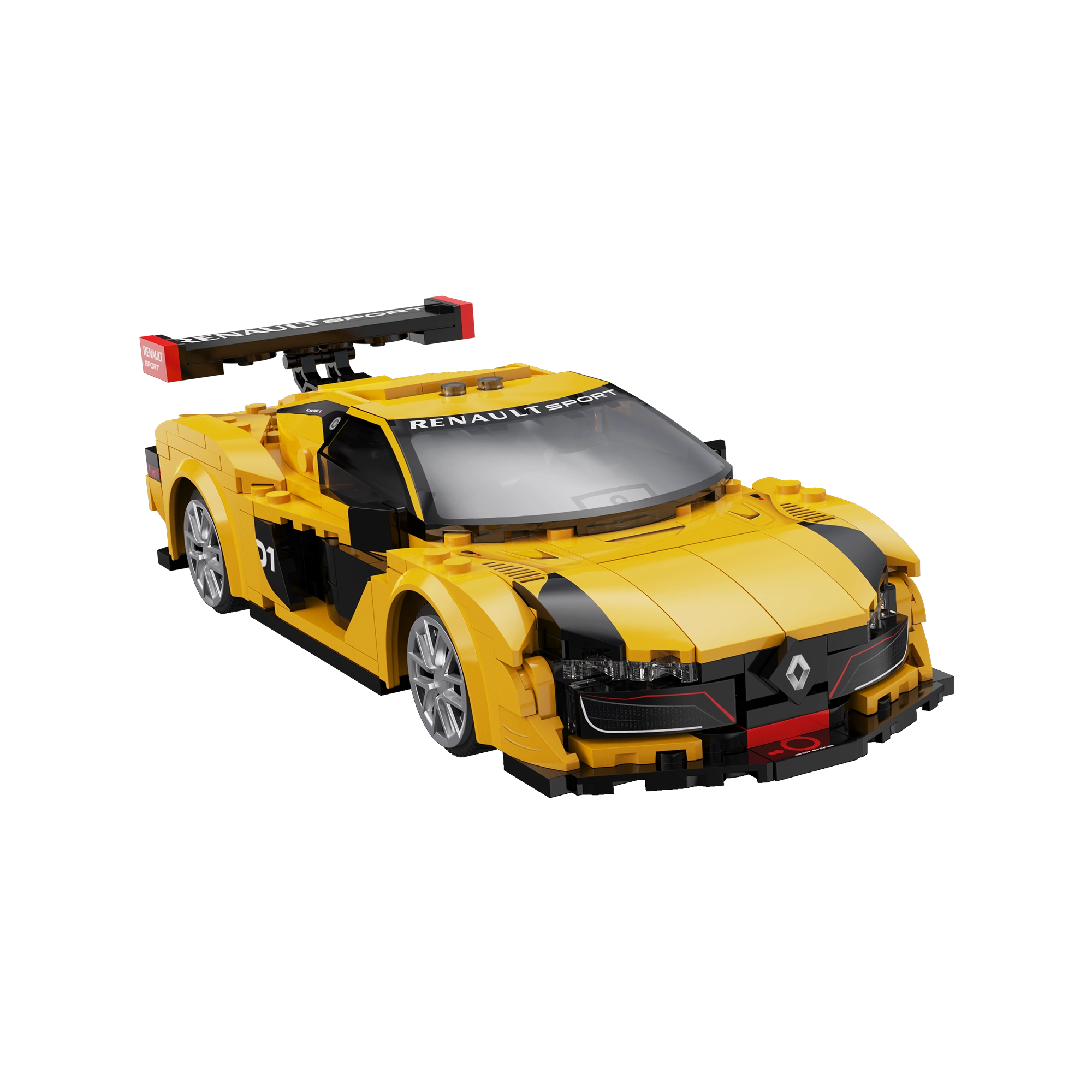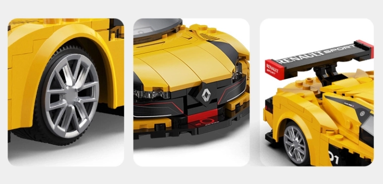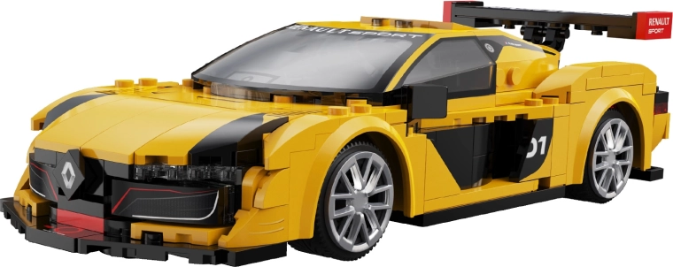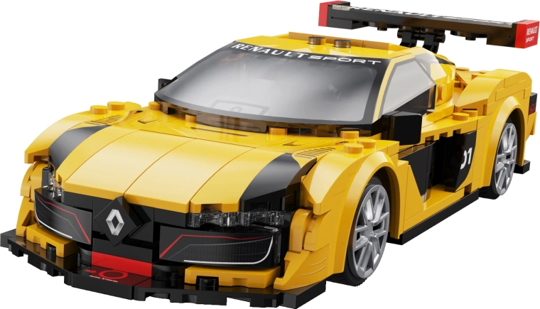 Žlto‑čierna karoséria, masívne zadné krídlo a nízky splitter prinášajú autentický štýl RENAULT SPORT – ideálne na hranie aj vystavenie.