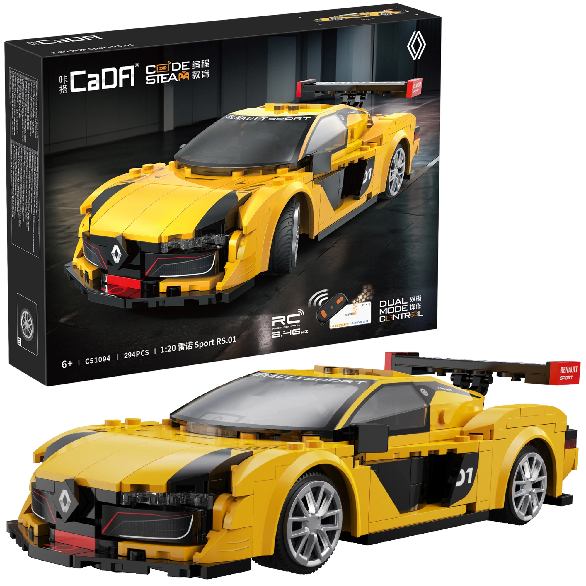 Zažite radosť z tvorby aj jazdy so stavebnicou CaDA RENAULT SPORT RS.01. Premyslená konštrukcia, realistické tvary a športové žlto‑čierne prevedenie zaručia skvelý vzhľad na poličke aj parádnu zábavu na podlahe. Vďaka RC Dual Mode môžete auto ovládať ovládačom 2,4 GHz aj cez Bluetooth aplikáciu s viacerými jazdnými režimami.