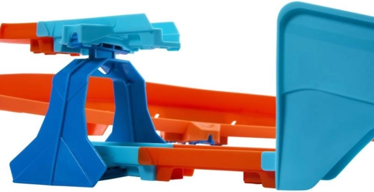 Vytvorte tri odporúčané rozloženia alebo navrhnite vlastný okruh s rampami na skoky a prudkými zákrutami. Jedno autíčko Hot Wheels je súčasťou balenia.