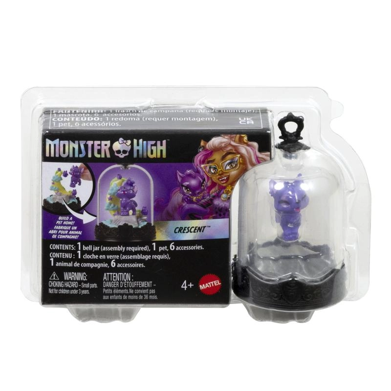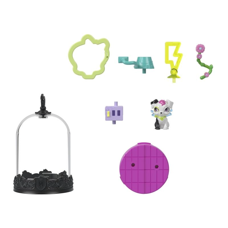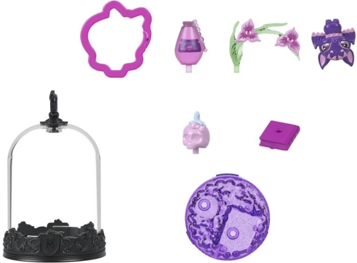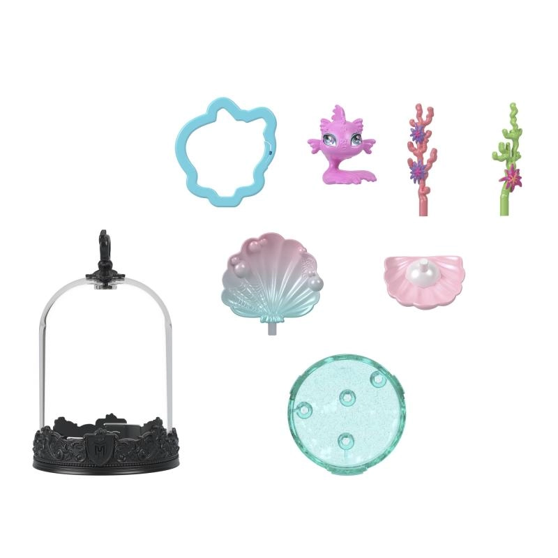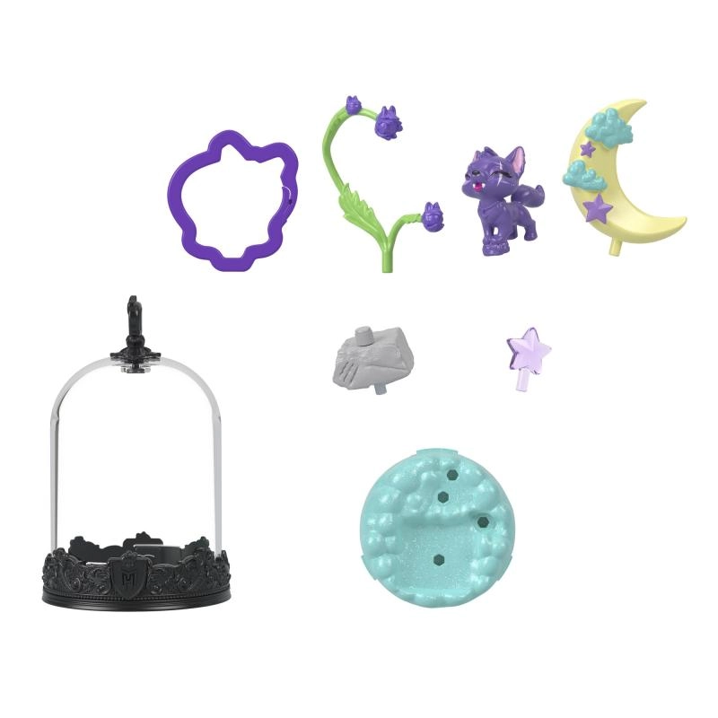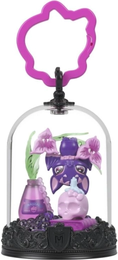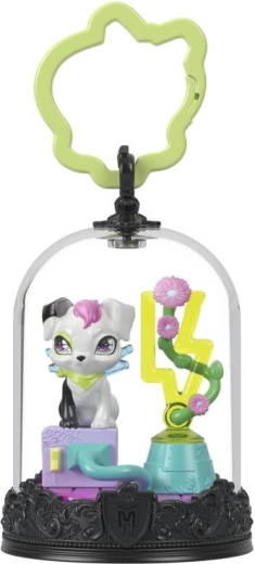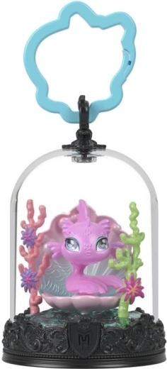 Každá kľúčenka MONSTER HIGH ukrýva zberateľského miláčika v čírom dóme na ozdobnom podstavci s erbom MH. Deti si vytvoria vlastnú mini scénu pomocou tematických doplnkov a potom ju uzavrú priesvitným krytom – vznikne tak štýlová závesná vitrína pripravená na cesty.