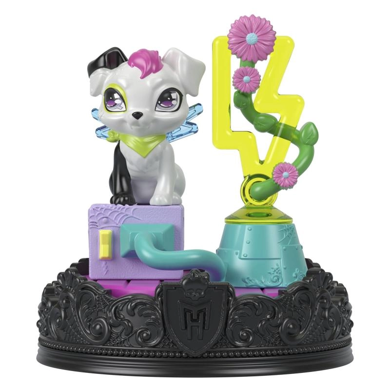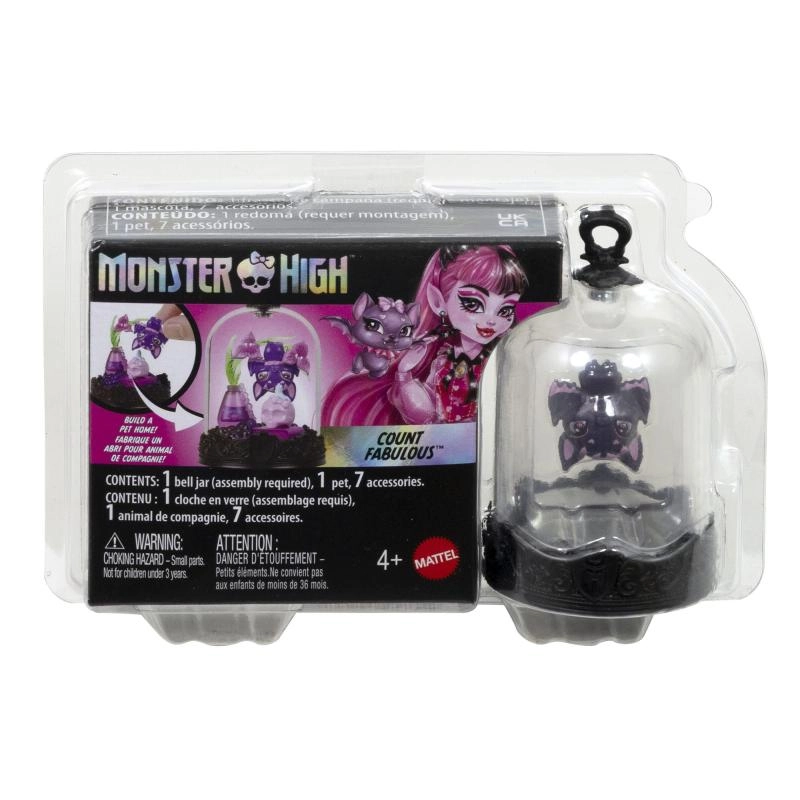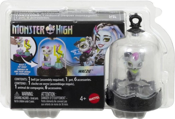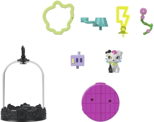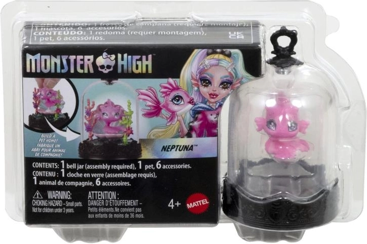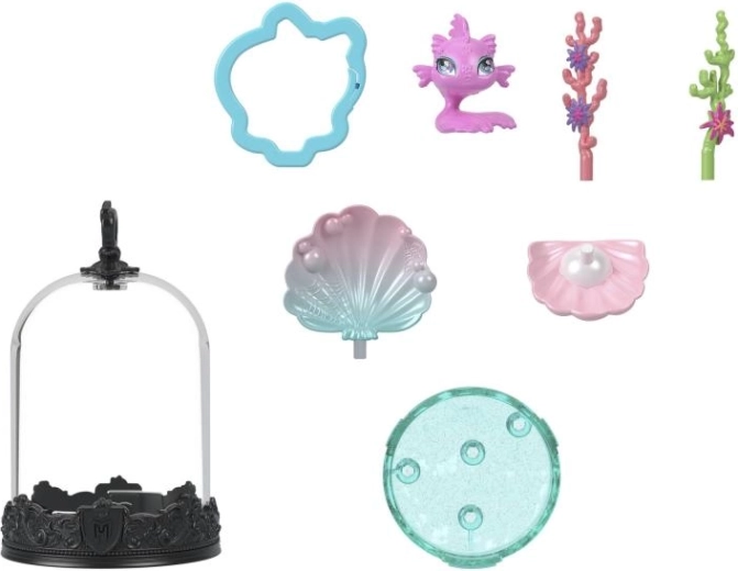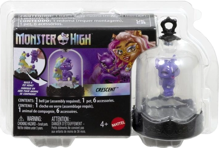Každá kľúčenka MONSTER HIGH ukrýva zberateľského miláčika v čírom dóme na ozdobnom podstavci s erbom MH. Deti si vytvoria vlastnú mini scénu pomocou tematických doplnkov a potom ju uzavrú priesvitným krytom – vznikne tak štýlová závesná vitrína pripravená na cesty.