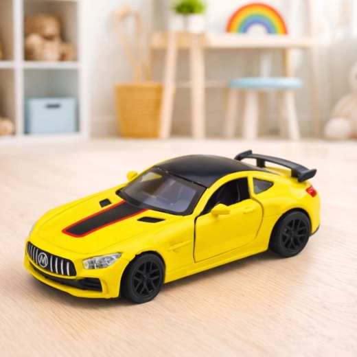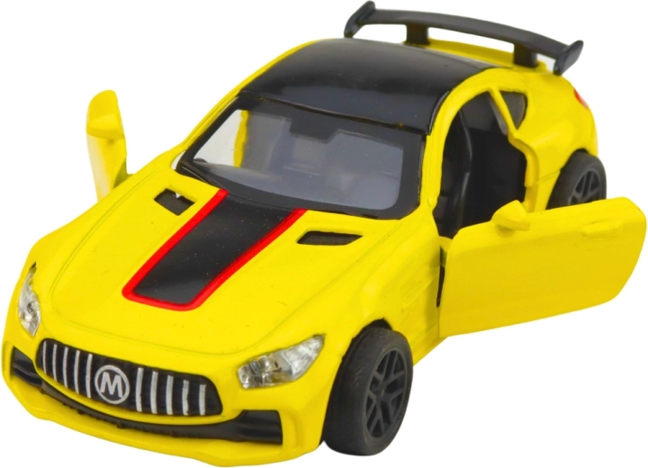 Tento detailne spracovaný kovový športový voz 1:32 kombinuje odolné kovové šasi s precíznymi plastovými dielmi. Agresívne línie karosérie, zadný spojler a kontrastné detaily podčiarkujú pretekársky charakter modelu, ktorý vyzerá skvelo na poličke aj v akcii.