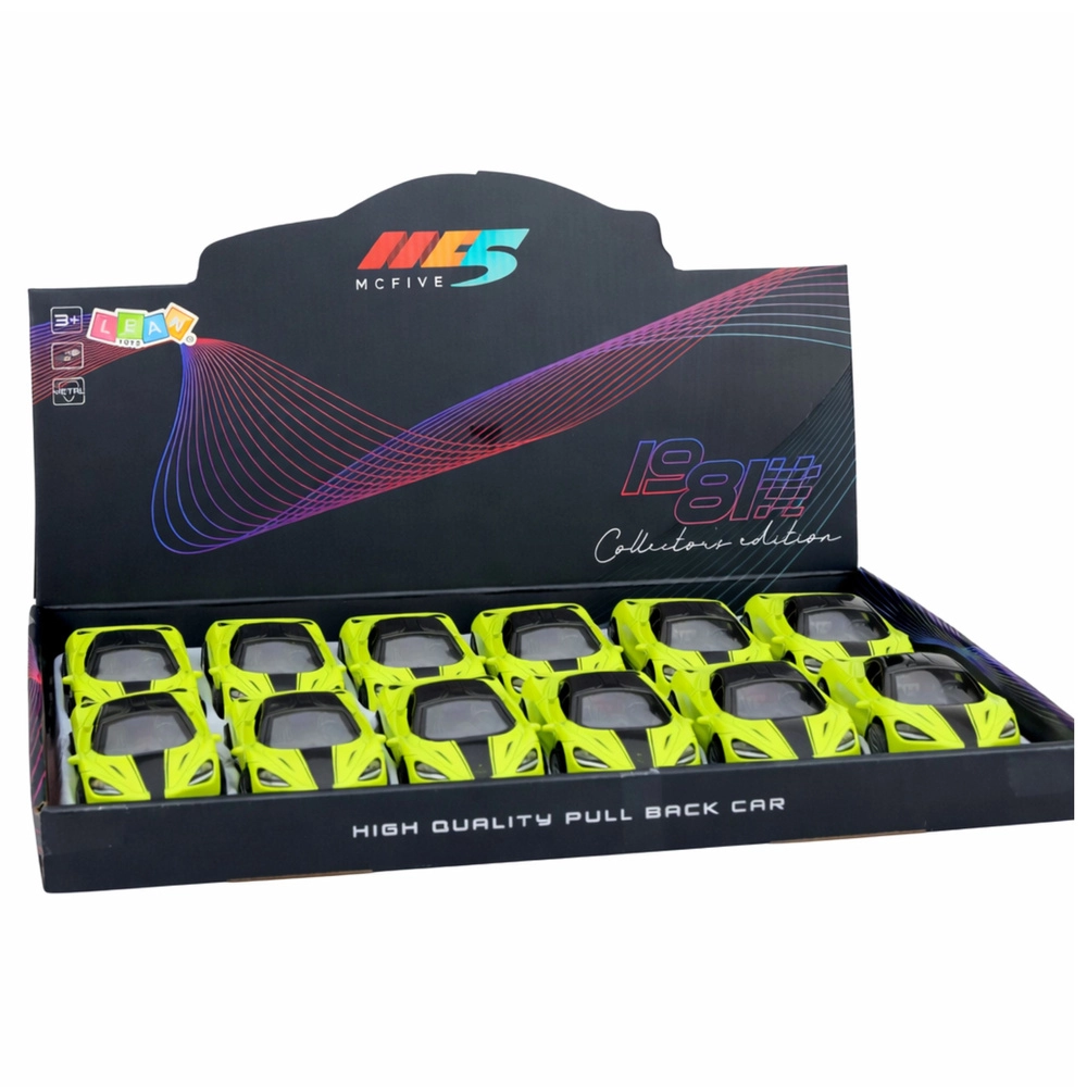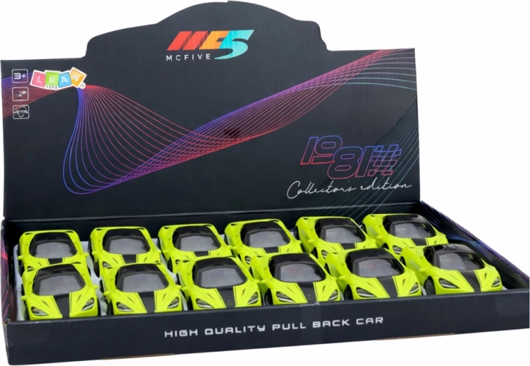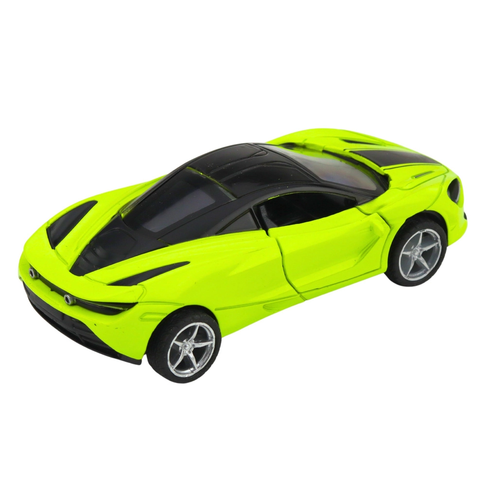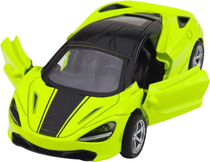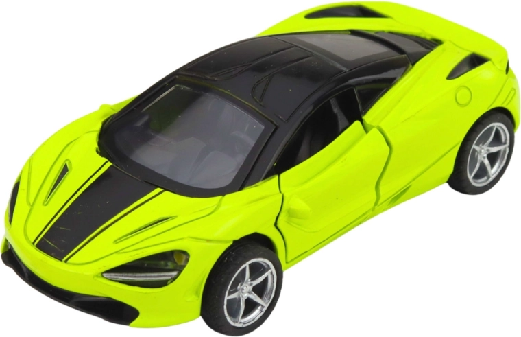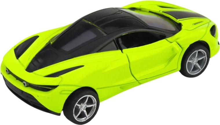Štýlový kovový športový voz v mierke 1:32 nadchne malých aj veľkých fanúšikov áut. Má kovovú karosériu, spätný natahovací pohon (pull-back), otváracie dvere a svetelné aj zvukové efekty. Kompaktné rozmery a výrazná zelená farba sa skvele hodia na každodenné hranie aj ako zberateľský model.