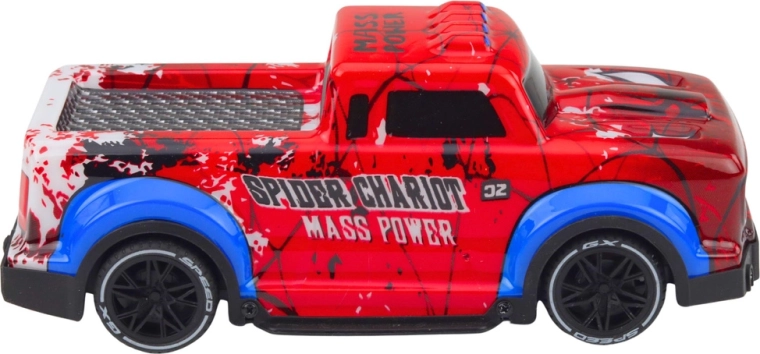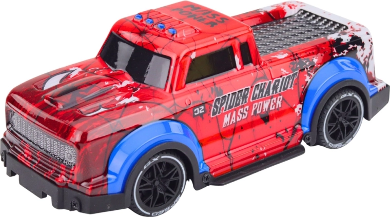 RC auto Spider zaujme športovým vzhľadom s kontrastnou grafikou a veľkými kolesami pre istú jazdu. Je ideálne na zábavu na podlahe, koberci aj hladkých povrchoch. Svetelné efekty umocnia atmosféru najmä pri horšom osvetlení a dodajú jazde atraktívny štýl.