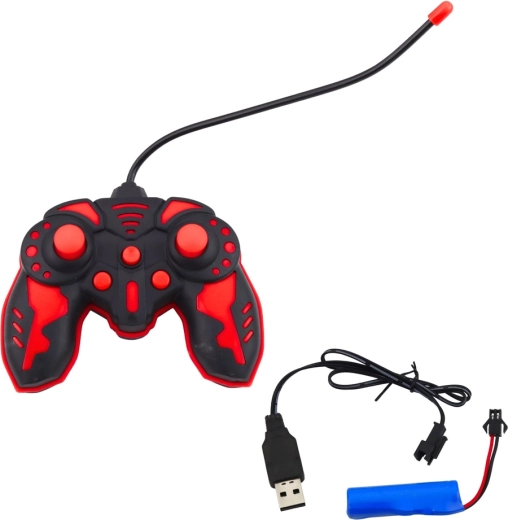 Ovládač poskytuje rýchlu odozvu a jednoduché riadenie – vpred/vzad a zatáčanie doľava/doprava. Vstavaný Li‑ion akumulátor 3,7 V zaistí praktické napájanie auta, ovládač využíva bežné batérie AA.