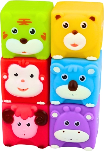 Bezpečný mäkký materiál bez ostrých hrán je vhodný na každodenné hranie aj do kúpeľa. Sada 6 kociek je skvelým darčekom, ktorý spája zábavu a učenie – deti si precvičia farby, názvy zvierat aj skladbu jednoduchých konštrukcií.