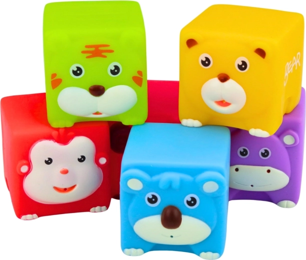 Roztomilá sada mäkkých kociek v tvare zvieratiek podporuje rozvoj jemnej motoriky, koordinácie ruka–oko a zmyslového vnímania. Každá kocka predstavuje iné zviera a láka deti k učeniu farieb, pomenúvaniu a prvým pokusom o stavanie veží. Bezpečný mäkký gumový materiál sa ľahko uchopí aj najmenšími rúčkami a je ideálny na hranie doma, na podložke aj pri kúpaní.