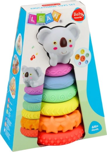 Farebná senzorická veža s roztomilou koalou podporuje rozvoj jemnej motoriky, koordináciu ruka–oko a učenie farieb a veľkostí už od prvých mesiacov. Každý krúžok má odlišnú textúru pre zmyslové vnímanie a ľahké uchopenie, materiál je bezpečný pre deti a odolný na každodenné hranie.