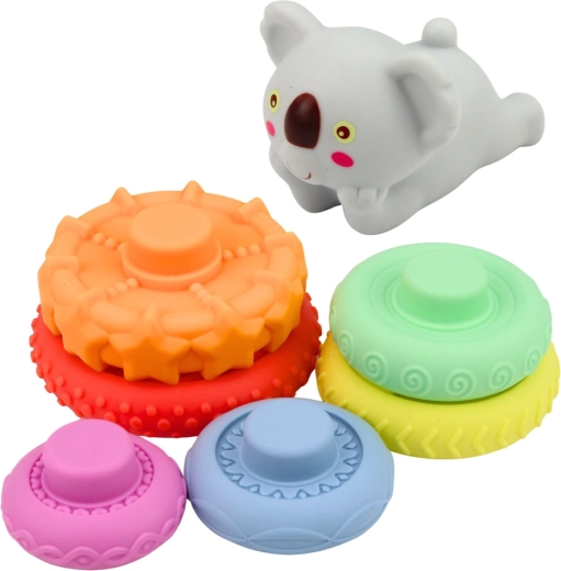 - Podstavec, 6 textúrovaných krúžkov, figúrka koaly