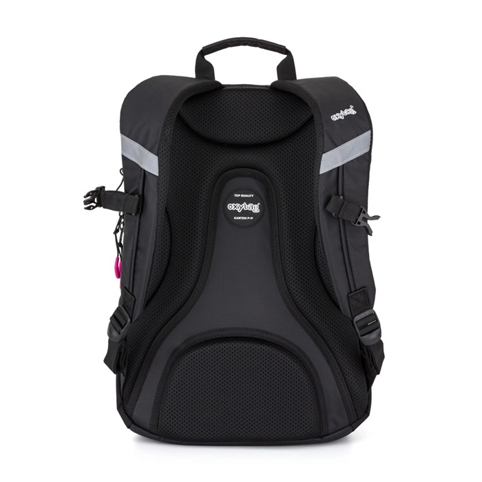 Štýlový školský a voľnočasový batoh OXYBAG v sete s etue ponúka ergonomicky tvarovaný chrbát, polstrované nastaviteľné popruhy s hrudným pásom a dostatok priestoru do školy aj na každodenné nosenie. Dve hlavné komory, vystužené vrecko na notebook, bočné vrecko na fľašu a množstvo reflexných prvkov zaistia pohodlie, poriadok aj bezpečie. Objem 24 l, hmotnosť 870 g, nosnosť 8 kg.