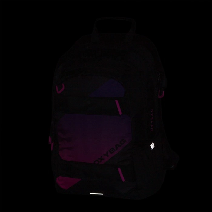 Set študentského batohu s etue OXYBAG Sport v obľúbenom ombré dizajne kombinuje moderný vzhľad a praktické členenie. Batoh má dve priestranné komory a menšie predné vrecko, pevné zipsy s pútkami a organizér pre každodenný prehľad. Pre bezpečné nosenie techniky je vo vnútri vystužené vrecko na notebook, nechýba karabína na kľúče, malé vrecko na drobnosti a skryté vrecko na chrbte.