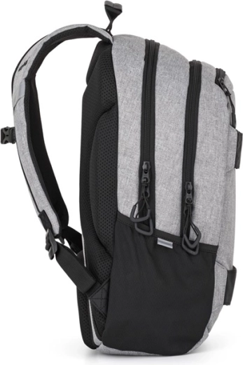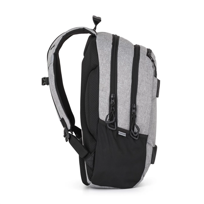 Vo vnútri nechýba vystužené vrecko na notebook, karabína na kľúče, menšie vrecko na cennosti a skryté vrecko v chrbtovom paneli. Na boku je vrecko na fľašu, reflexné prvky zvyšujú viditeľnosť pri pohybe v meste. Súčasťou setu je študentská etuja s elastickými úchytmi a zapínaním na zips pre prehľadné uloženie písacích potrieb.
