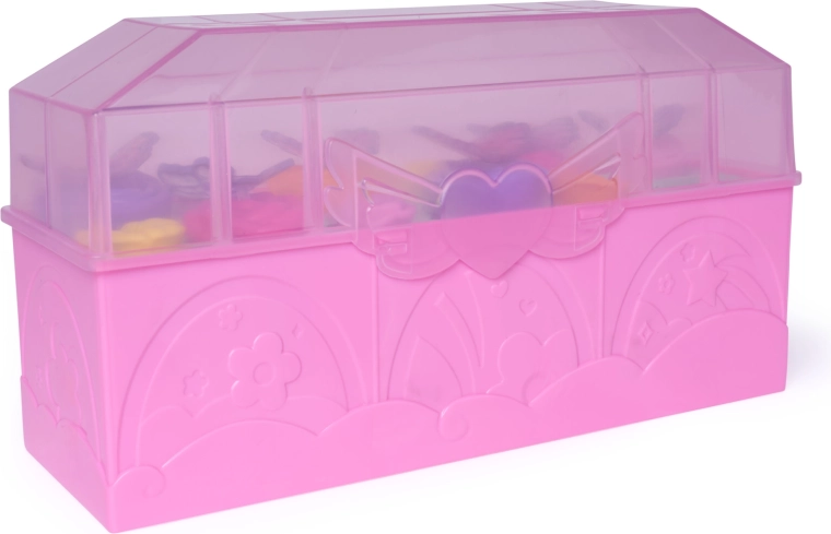 Ružový kufrík s priehľadným vekom pojme figúrky, kvety aj doplnky. Slúži ako prenosné úložisko aj štýlová vitrínka pre zbierku.