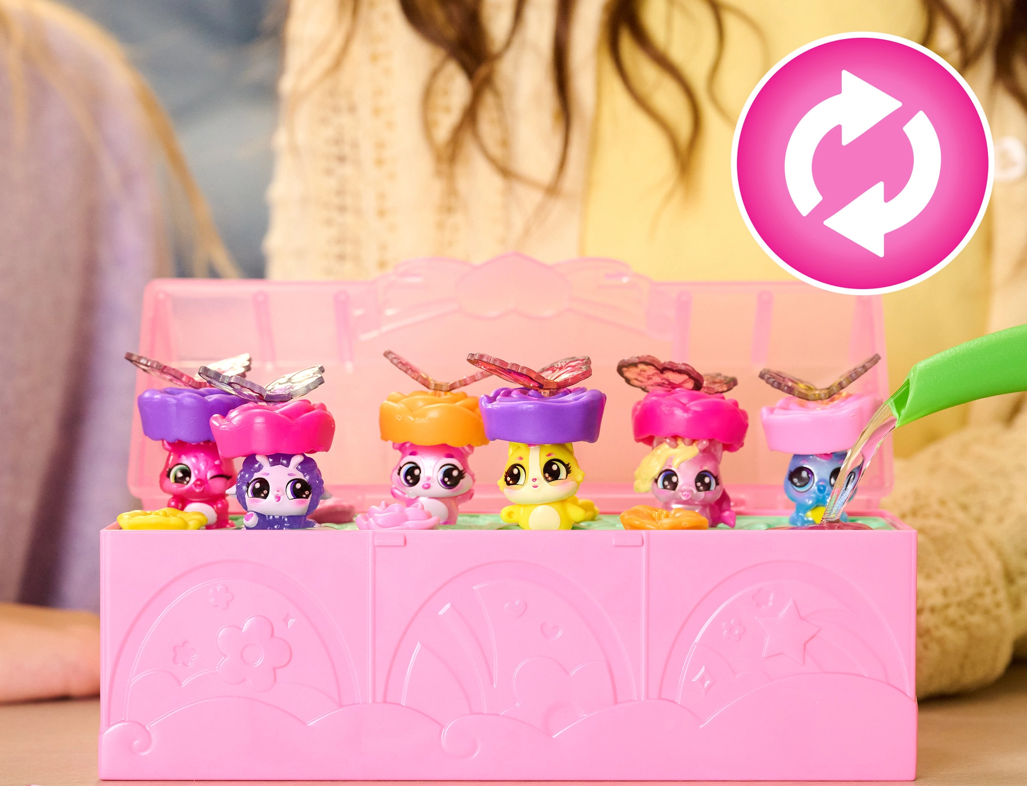 Nalejte vodu do srdca kufríka a sledujte, ako kvety vyrastú a odkryjú rozkošné Bloomables. Kúzelný moment prekvapenia poteší pri každej hre.