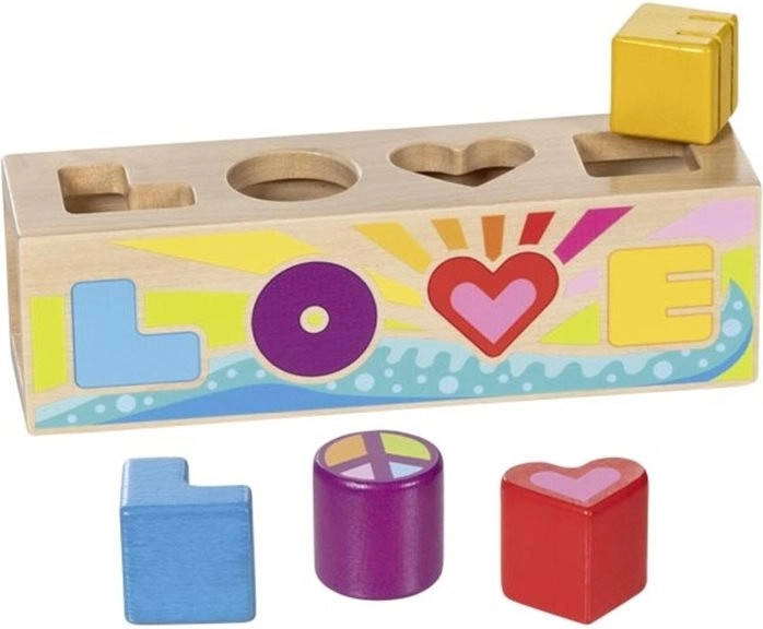 Deti ľahko priraďujú dieliky do správnych otvorov, trénujú jemnú motoriku, logiku a zoznamujú sa s písmenami L, O, V, E.