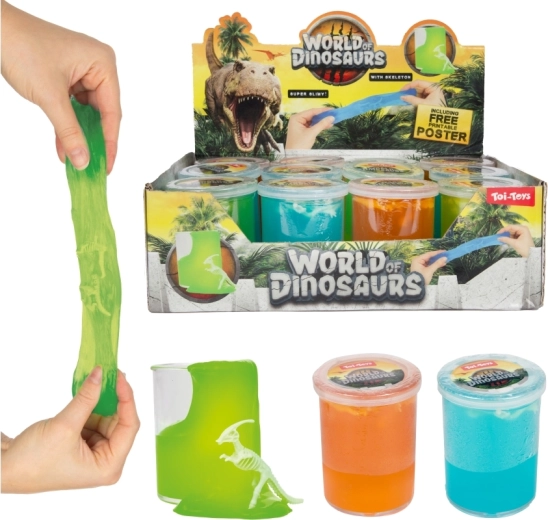 - Sliz so skrytou dinosaurou kostrou v plastovom kelímku