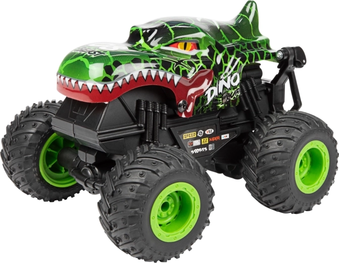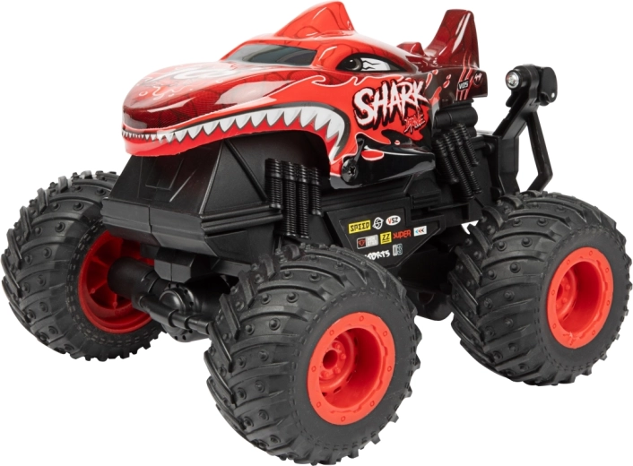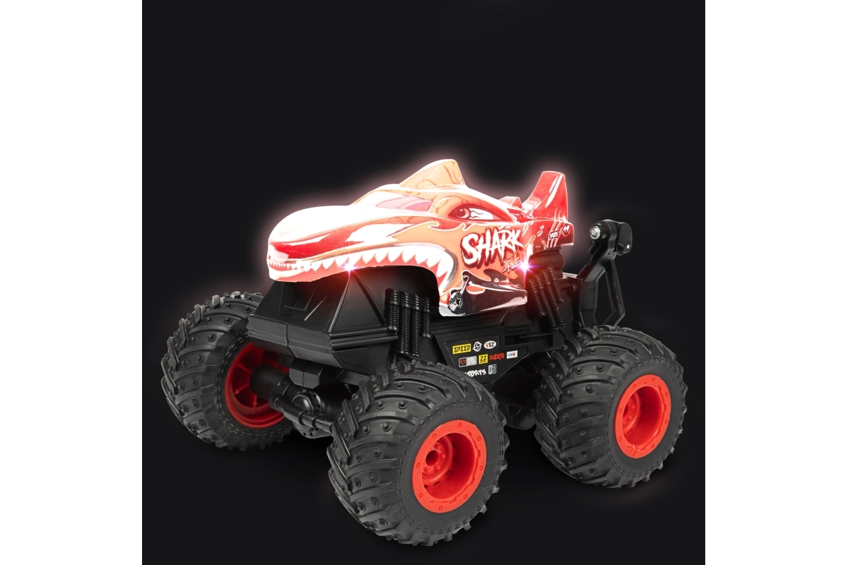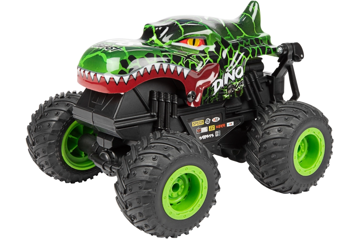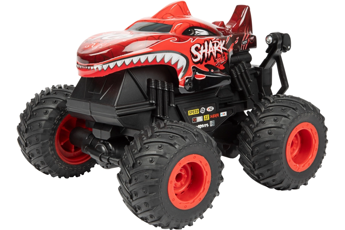 Monster truck je vyrobený z odolného plastu, má veľké profilované kolesá a viditeľné odpruženie pre lepšiu stabilitu na nerovnom povrchu. Dva atraktívne vzhľady (dinosaurus alebo žralok) dodávame podľa skladovej dostupnosti – každý zaujme výrazným dizajnom a robustným prevedením.