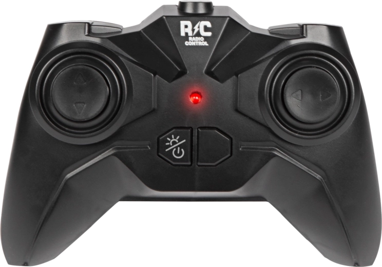 Ergonomický vysielač s prehľadnými tlačidlami pre jednoduché riadenie smeru a aktiváciu špeciálnych funkcií. Vhodné aj pre malé detské ruky.